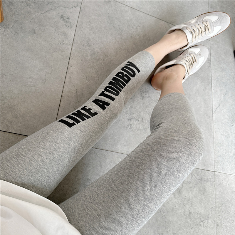 여름 2023 8 점 사이드 레터 프린트 스트레치 코튼 학생 8 점 편안한 레깅스 팬츠 여성용스토어 가기