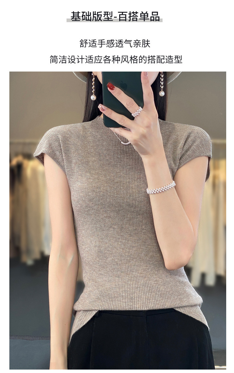 반팔 티셔츠 여성용 60 초미세 소모 슬림 슬림 베이스 민소매 얇은 내부 세미 하이 칼라 스웨터
