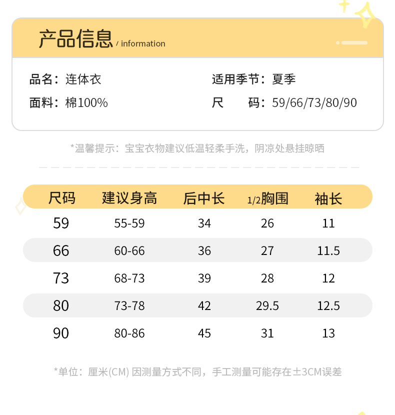 아기 얇은 옷 신생아 여름 원피스 여아 한 살 순면 점프수트 짧은 바디수트 3176