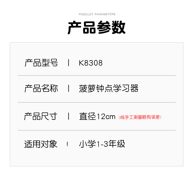 갤럭시 스타 K8308 파인애플 시간 학습 장치 유아 초등학생 시간 학습 학습 보조 문구