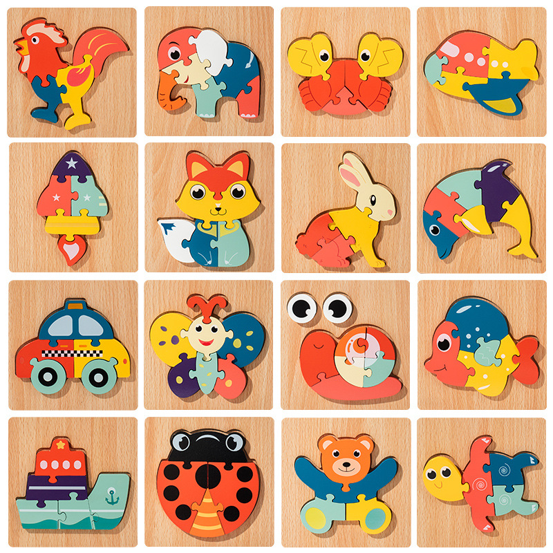 새로운 나무 어린이 만화 3 차원 퍼즐 훈련 집중 조기 교육 빌딩 블록 동물 매칭 퍼즐 3D 장난감스토어 가기