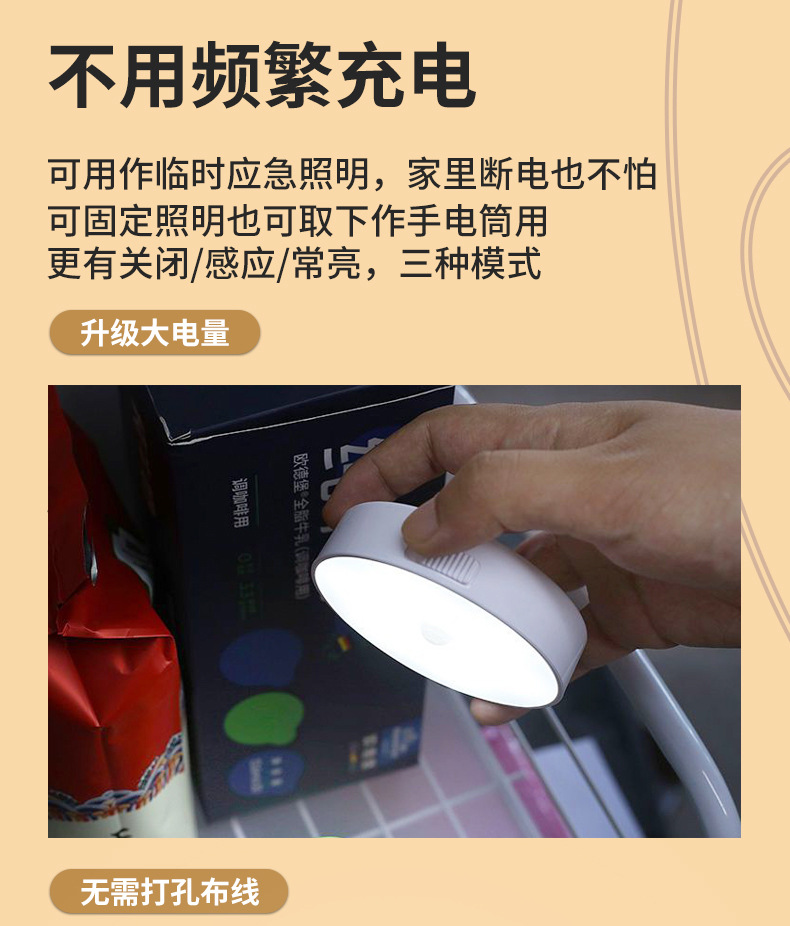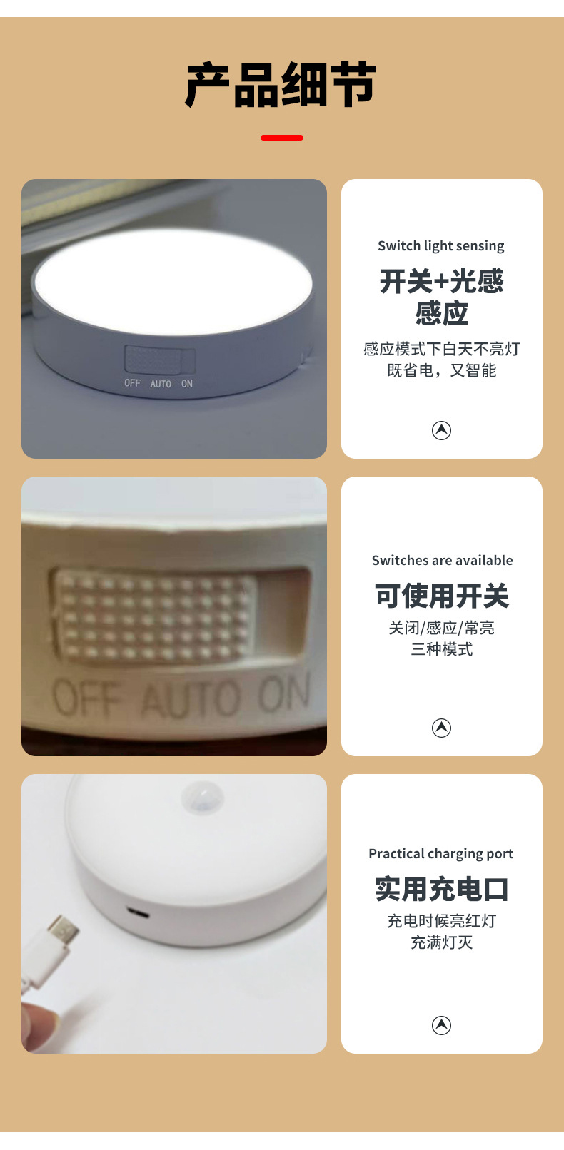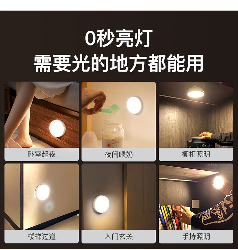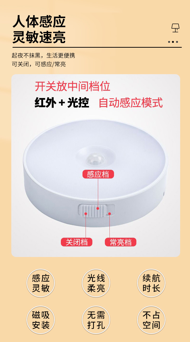 인체 감지 야간등 스위치+센서+상시 점등 스마트 램프 학생 기숙사 충전식 가정용 야간등 해외 판매스토어 가기