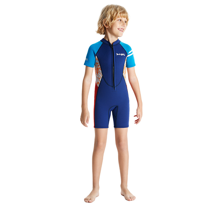 2.5mm 어린이 다이빙 세트 따뜻한 원피스 다이빙 세트 큰 아이 반팔 수영 서핑 스노클링 두꺼운 수영복스토어 가기