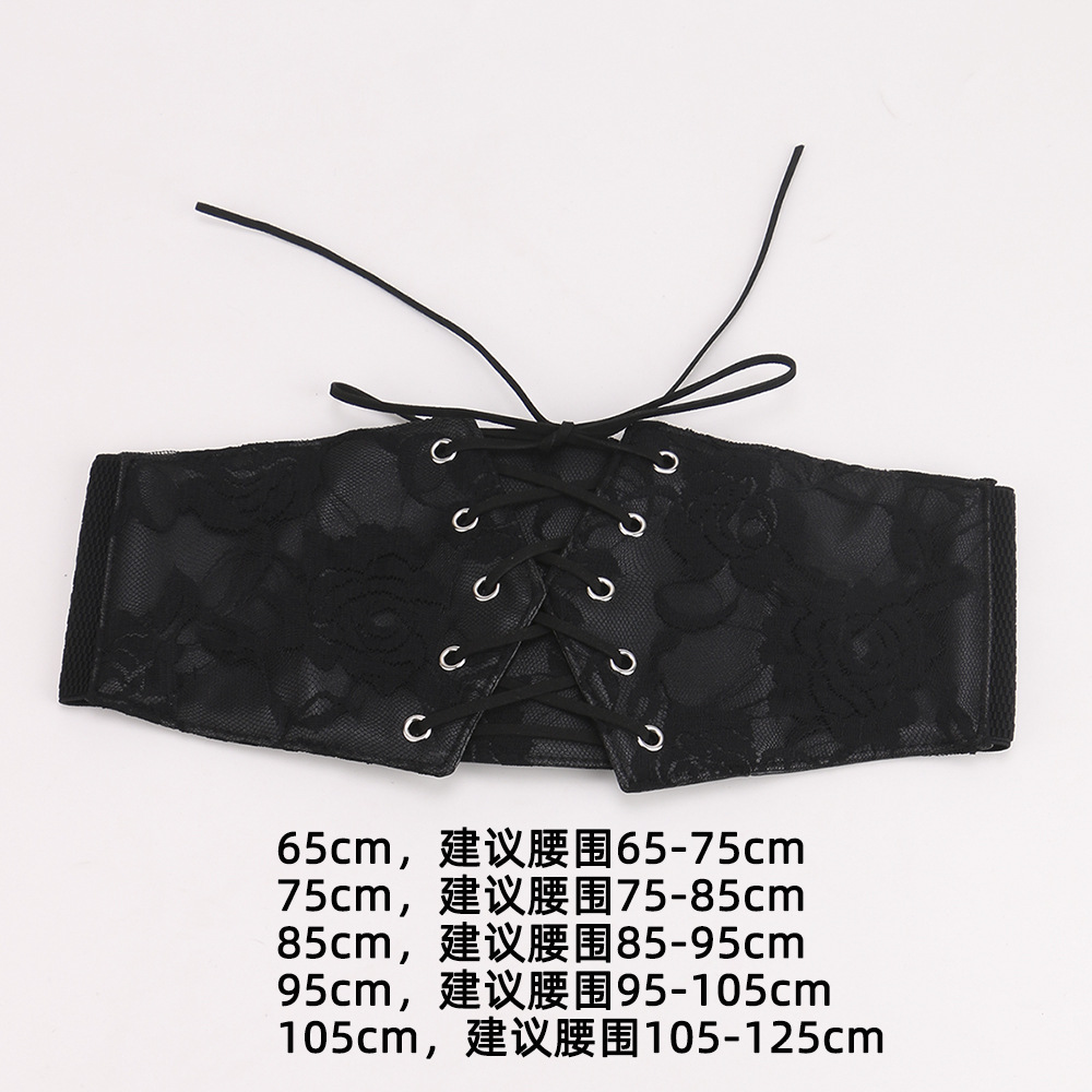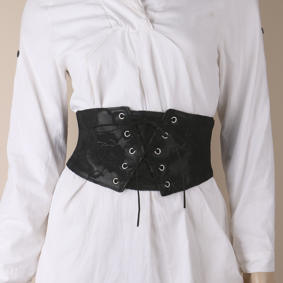 대외 무역 빈티지 레이스 업 장식 블랙 레이스 웨이스트 씰 여성용 유럽 및 미국 탄성 허리 벨트 와이드 아우터 착용 모든 매치스토어 가기