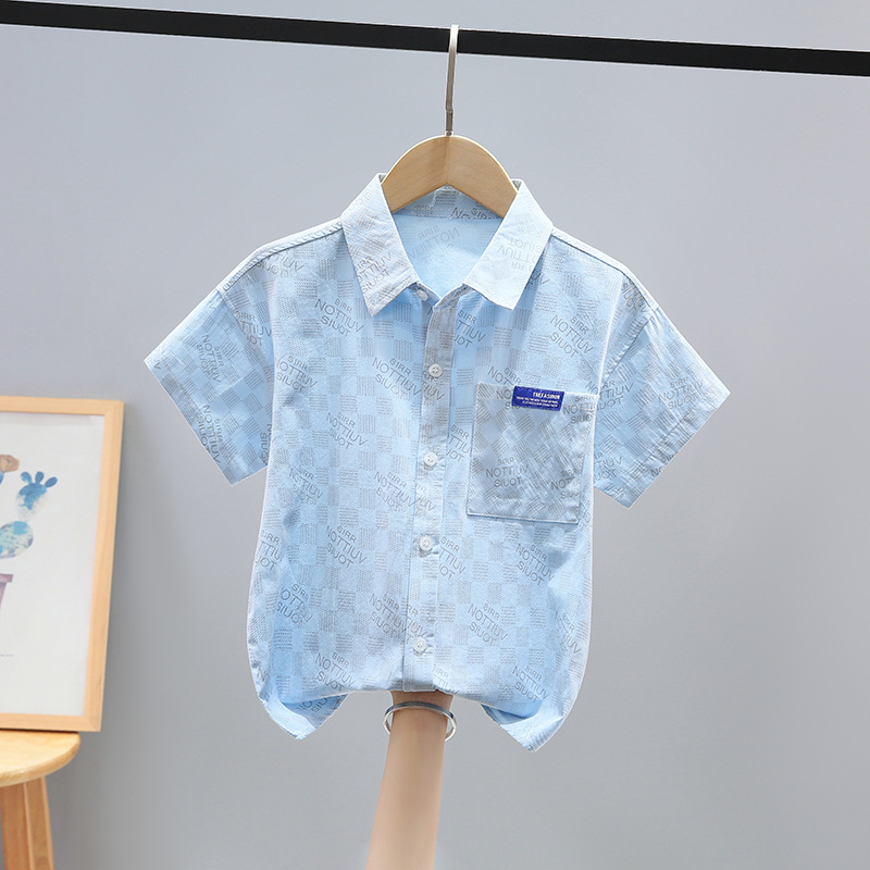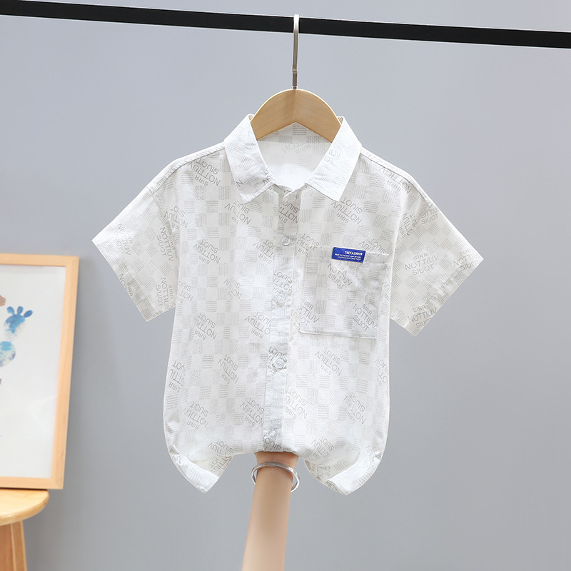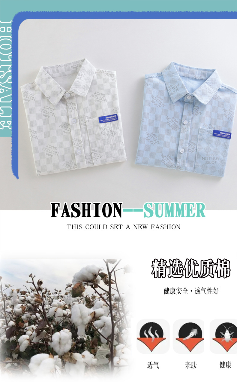 여름 새 소년 얇은 반팔 프린트 셔츠 대형 어린이 만화 가디건 탑 면 캐주얼 소년스토어 가기