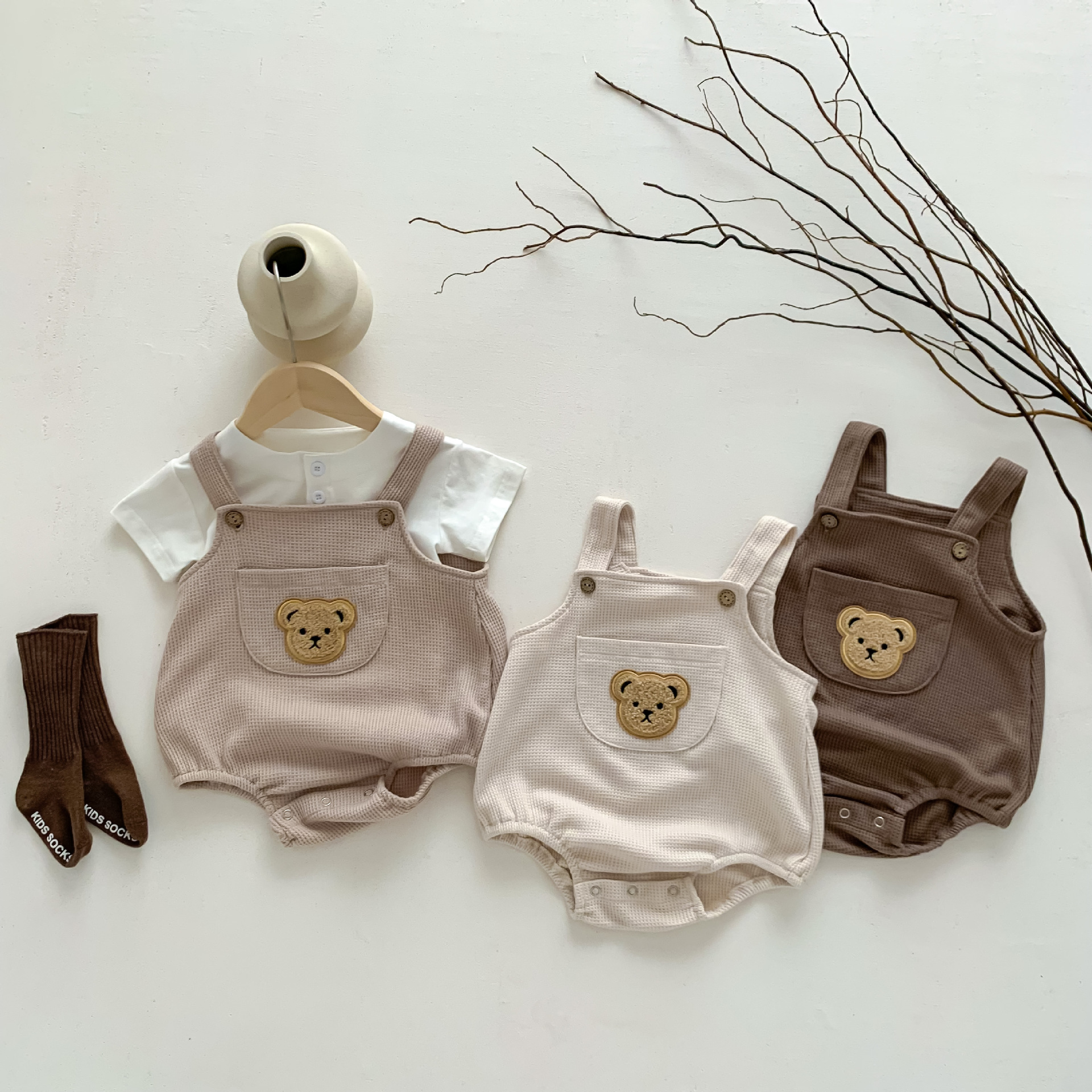 아기의 여름 소매 바지 남성과 여성의 아기 반팔 티셔츠 와플러 곰 투피스 신생아 세트스토어 가기