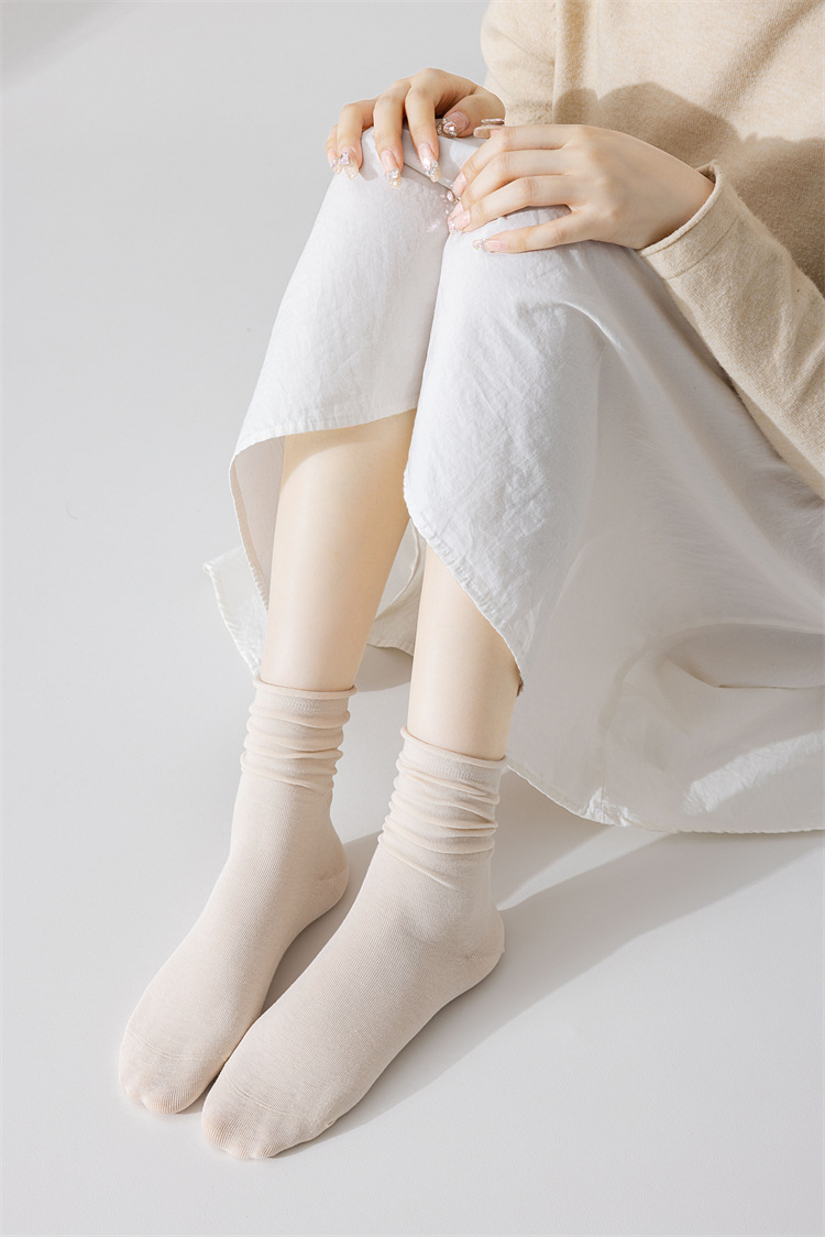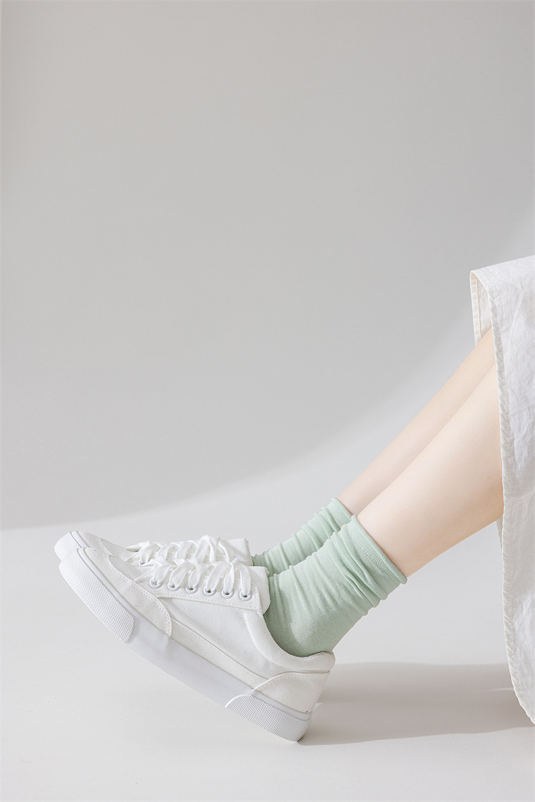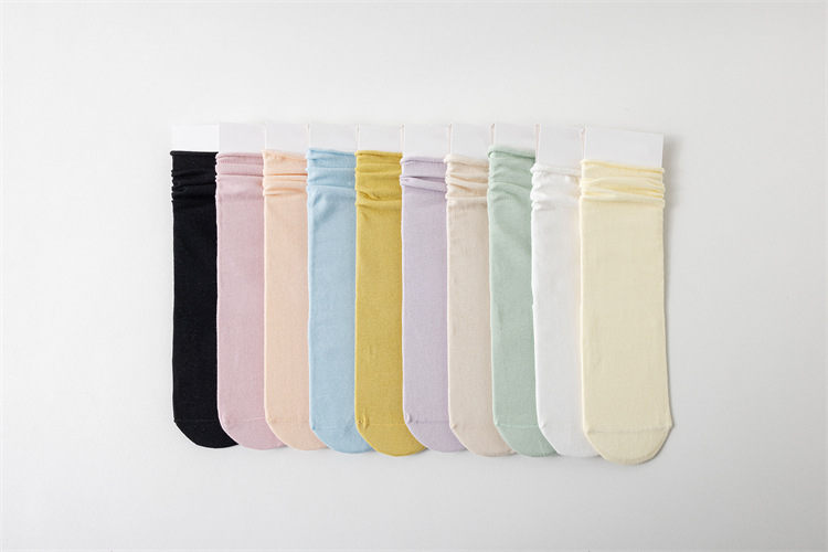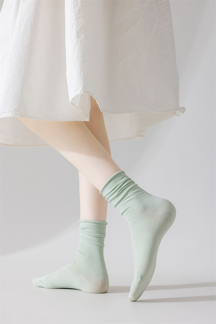 여름 얇은 통기성 땀 흡수 빗질 면 여성 양말 일본식 롤업 뼈없는 스택 양말 캔디 컬러 미드 튜브 문 양말스토어 가기
