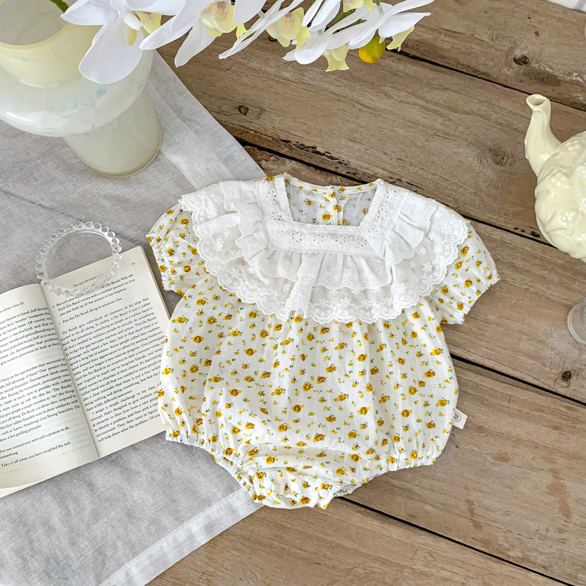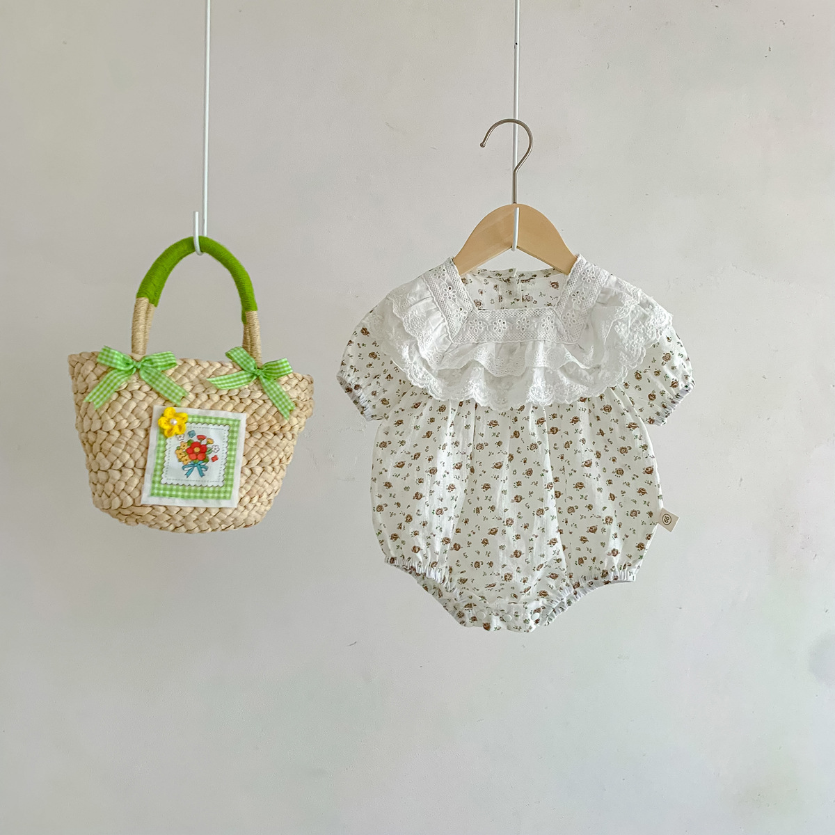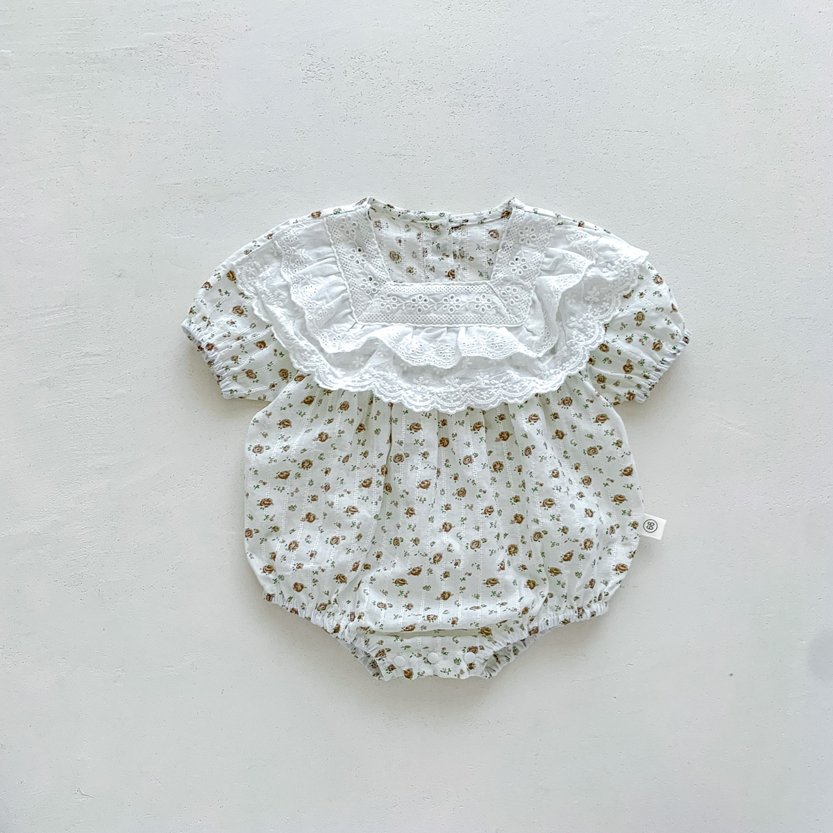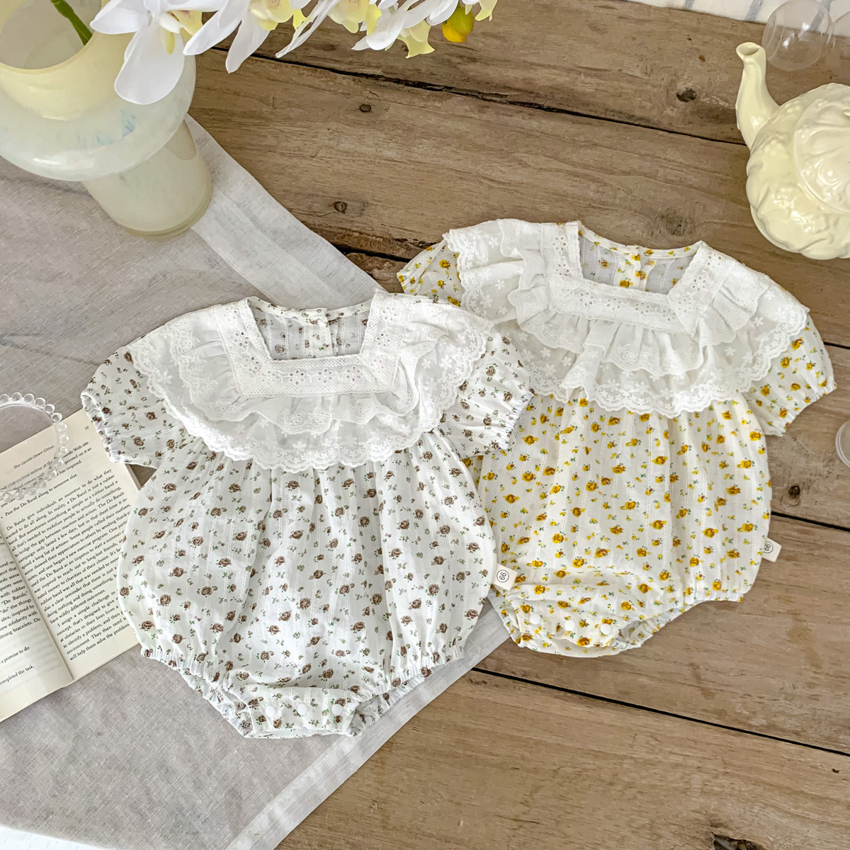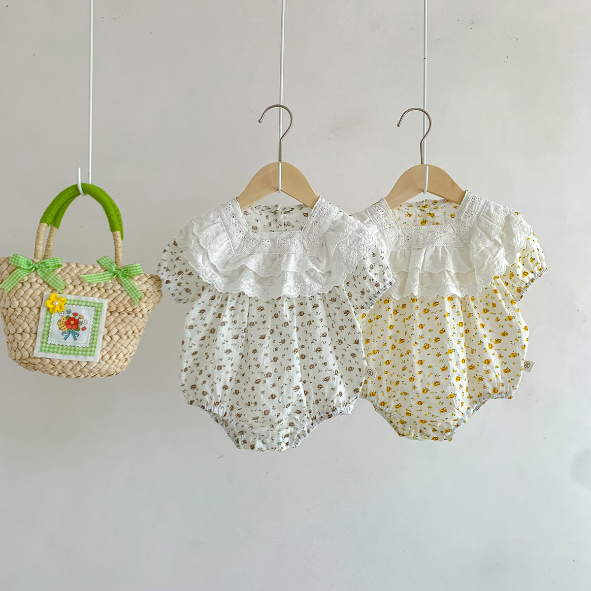 아기의 점프 슈트 여름 얇은 여성용 버블 반팔 랩 업 뚱뚱한 옷 신생아 아기 레이스 백일 공주 원피스스토어 가기