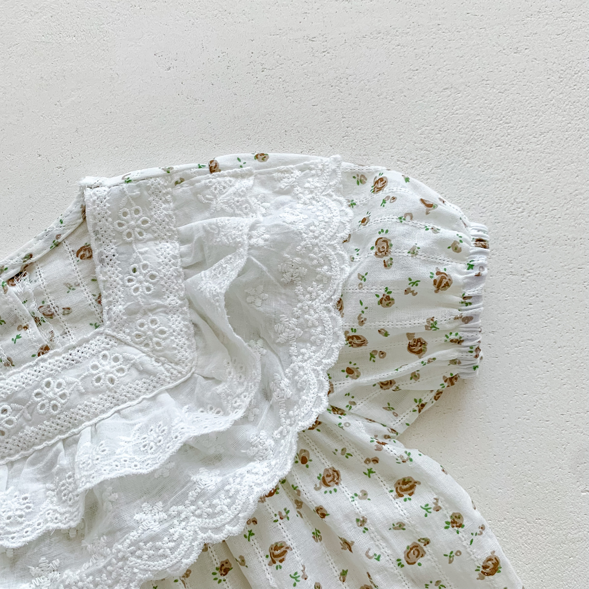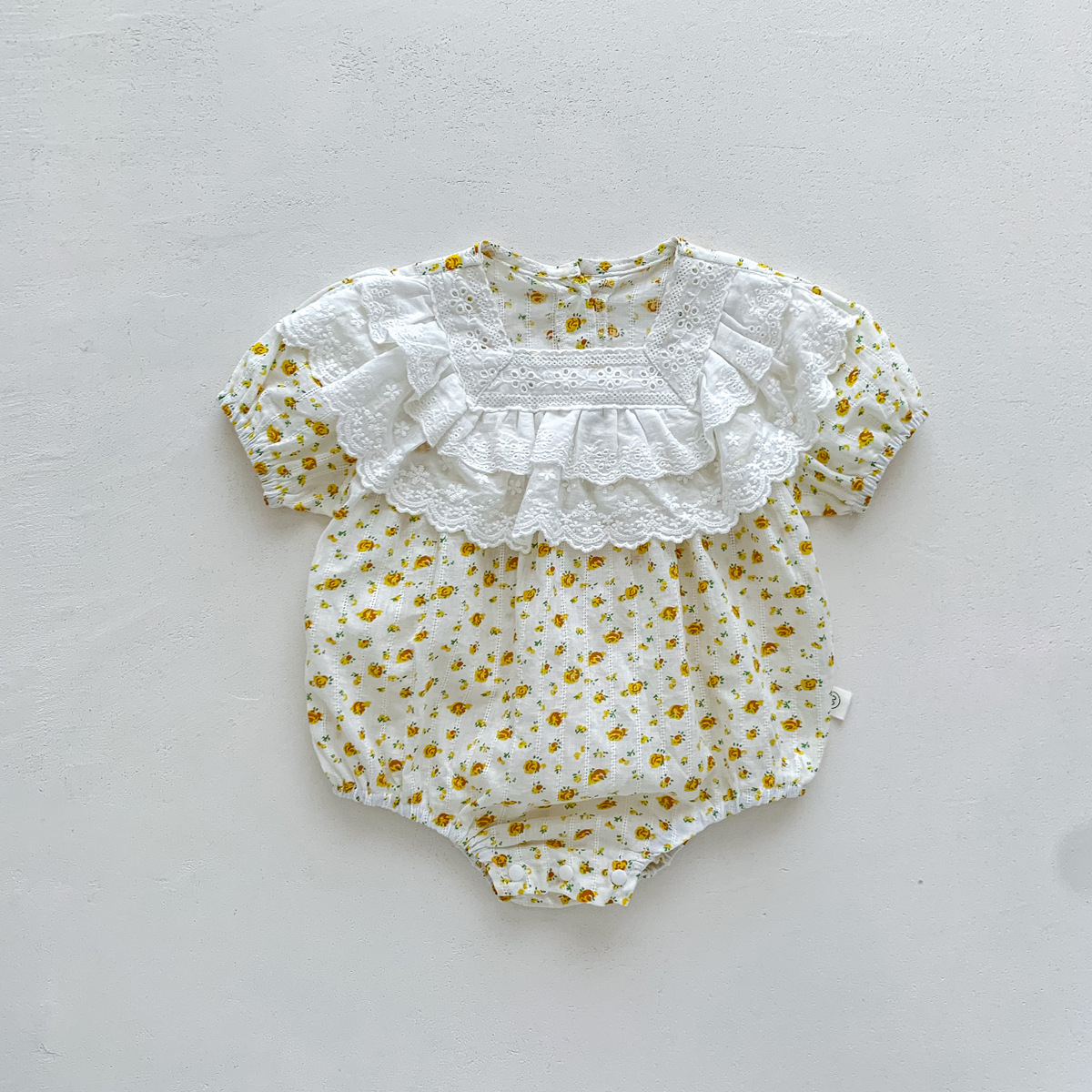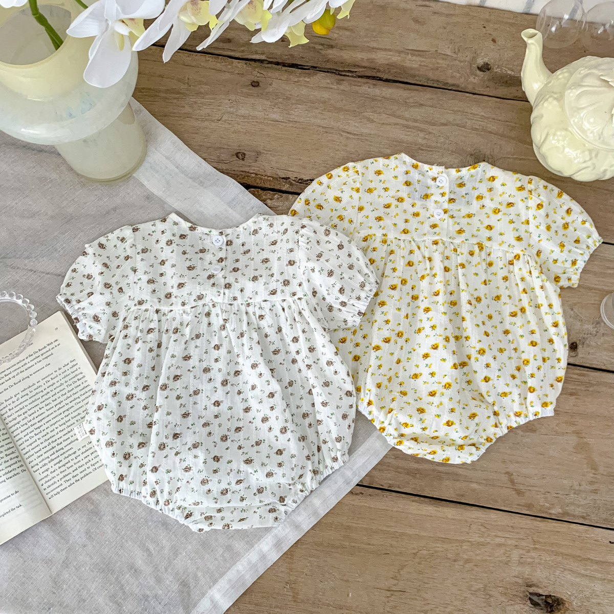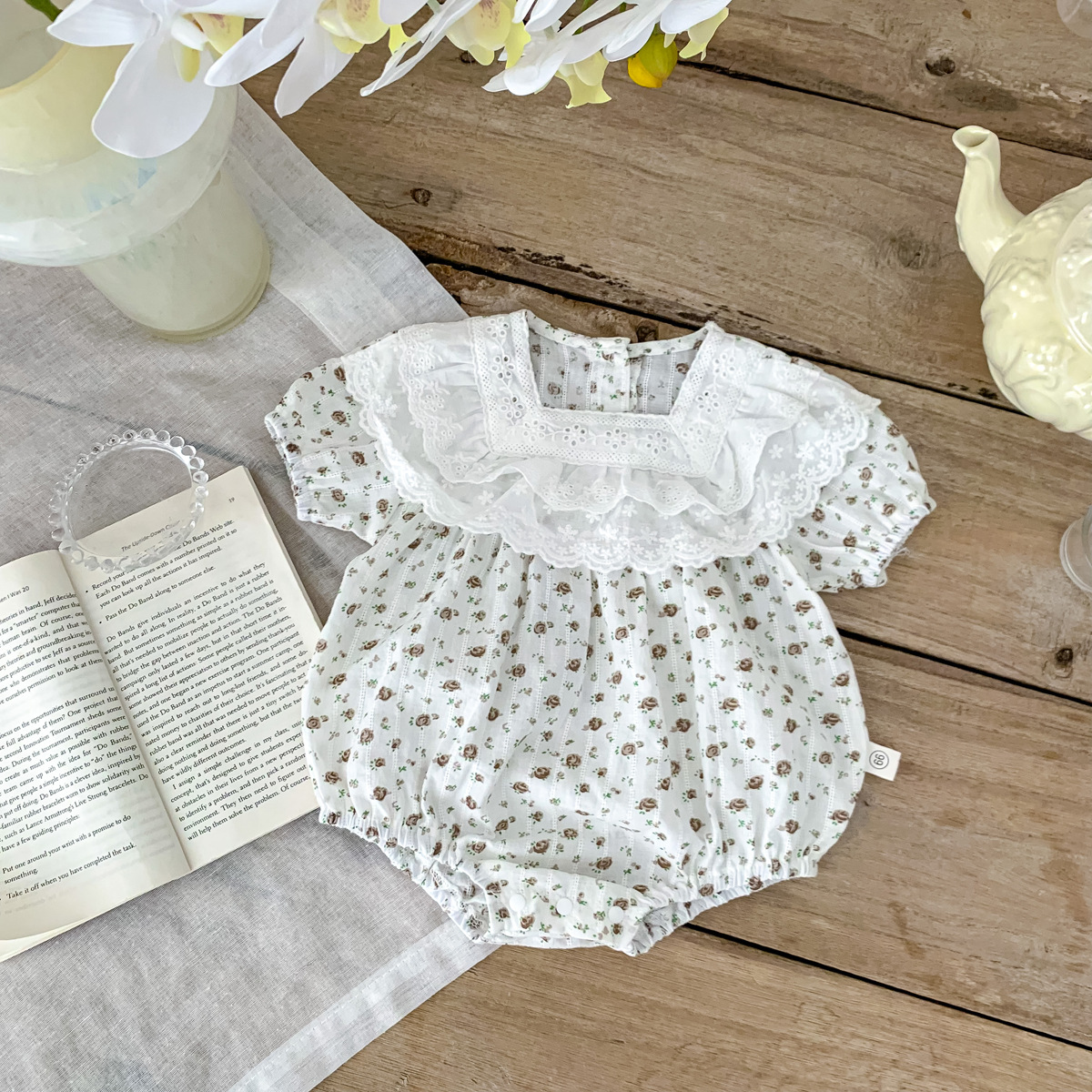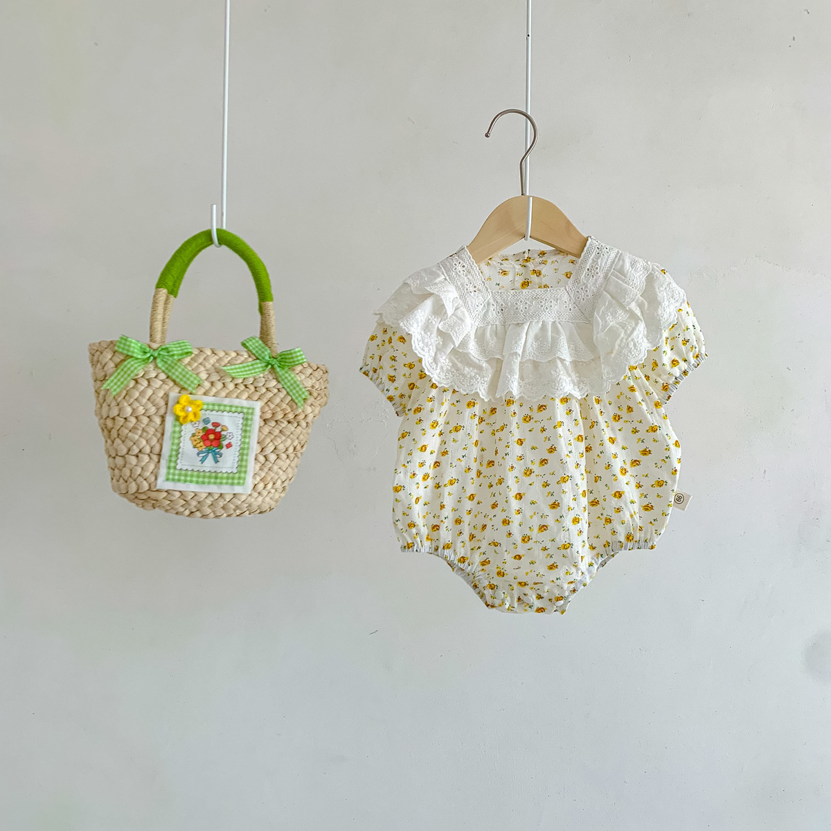 아기의 점프 슈트 여름 얇은 여성용 버블 반팔 랩 업 뚱뚱한 옷 신생아 아기 레이스 백일 공주 원피스스토어 가기