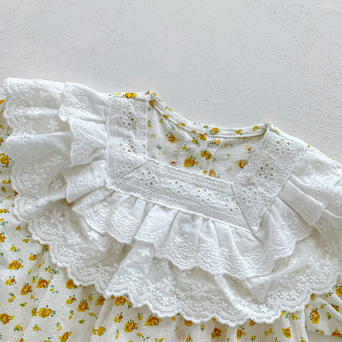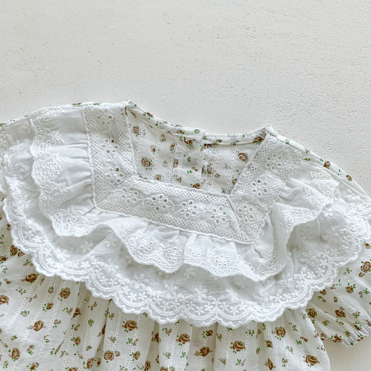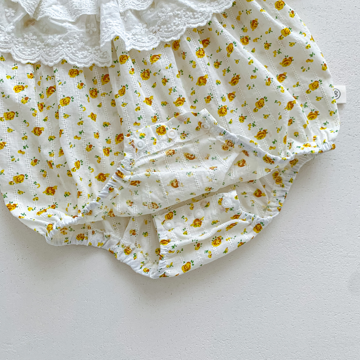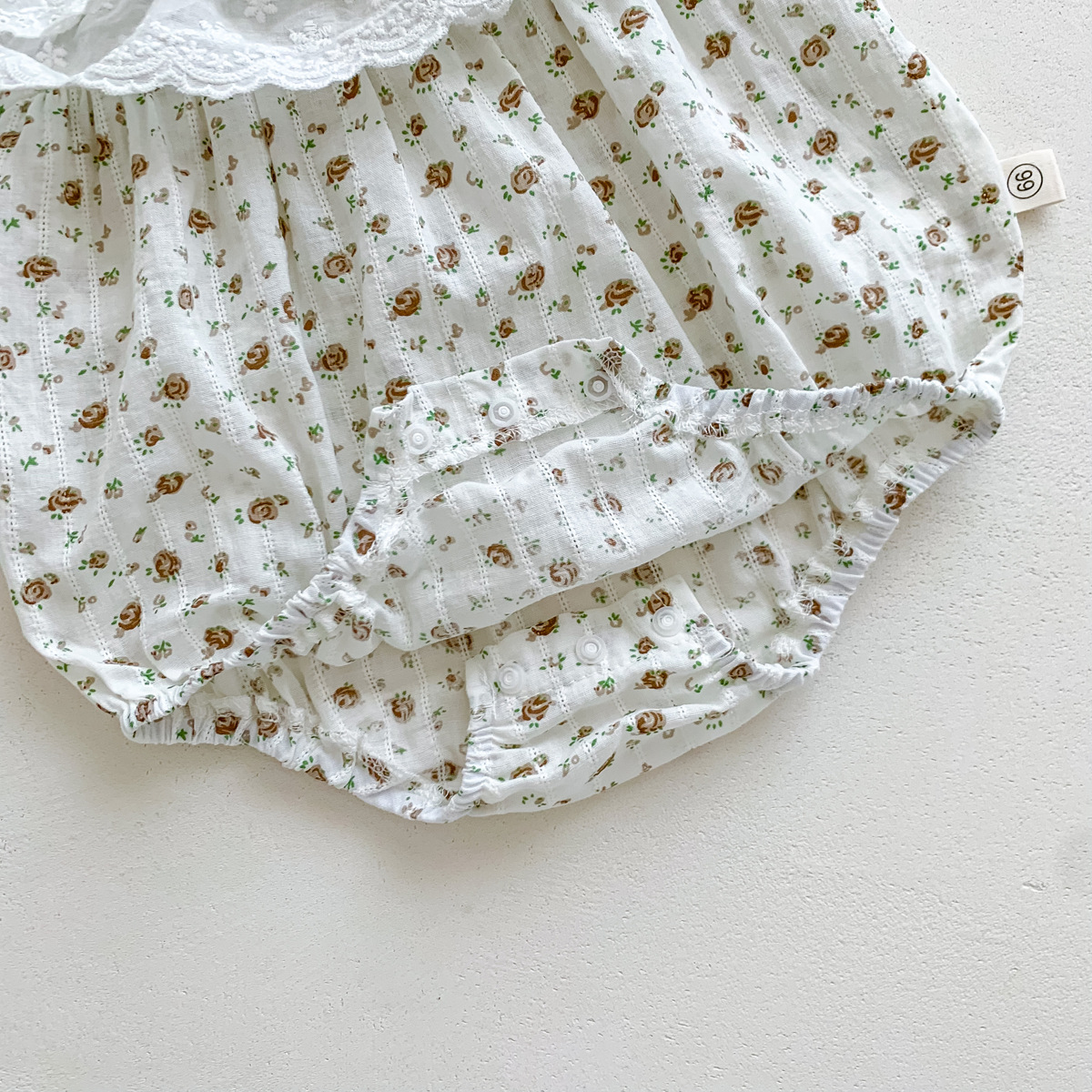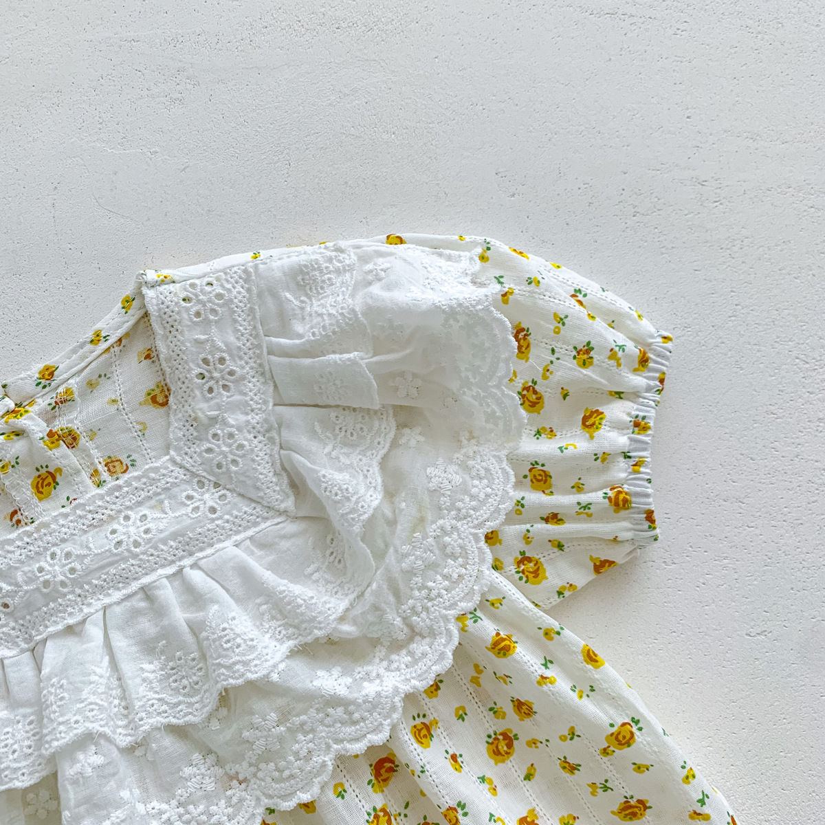 아기의 점프 슈트 여름 얇은 여성용 버블 반팔 랩 업 뚱뚱한 옷 신생아 아기 레이스 백일 공주 원피스스토어 가기