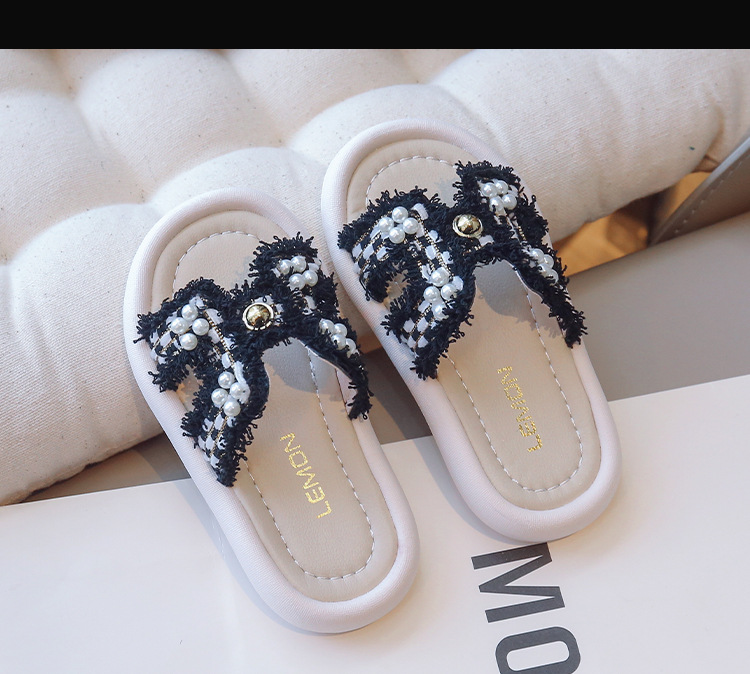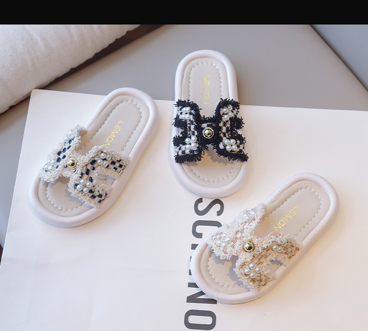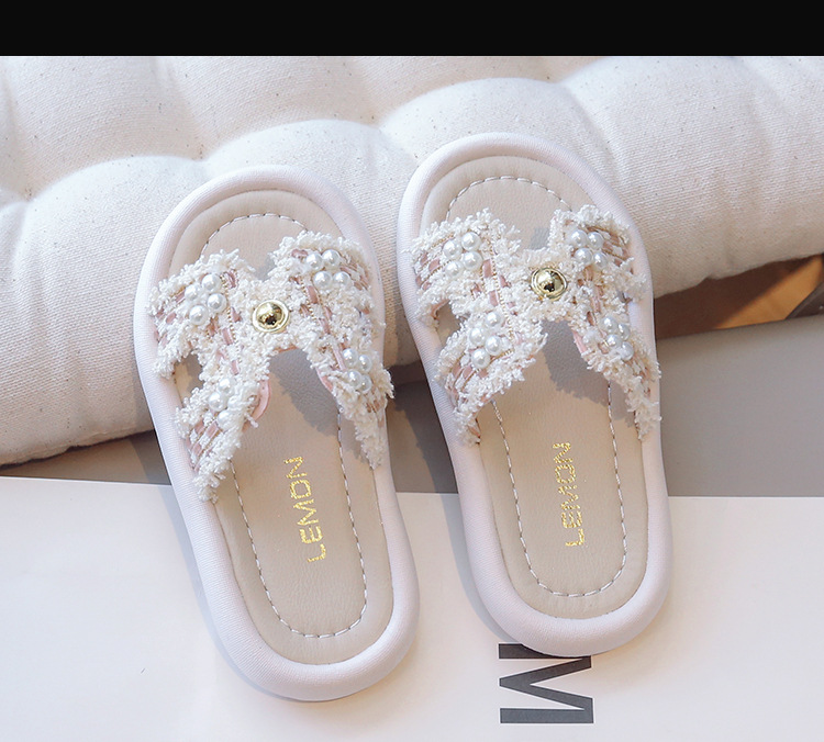 2025 여름 새 여자 슬리퍼 패션 아기 한 단어 슬리퍼 캐주얼 부드러운 바닥 진주 어린이 신발 도매 세대스토어 가기