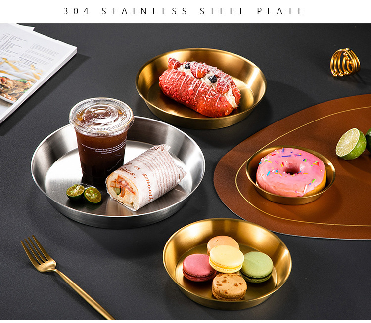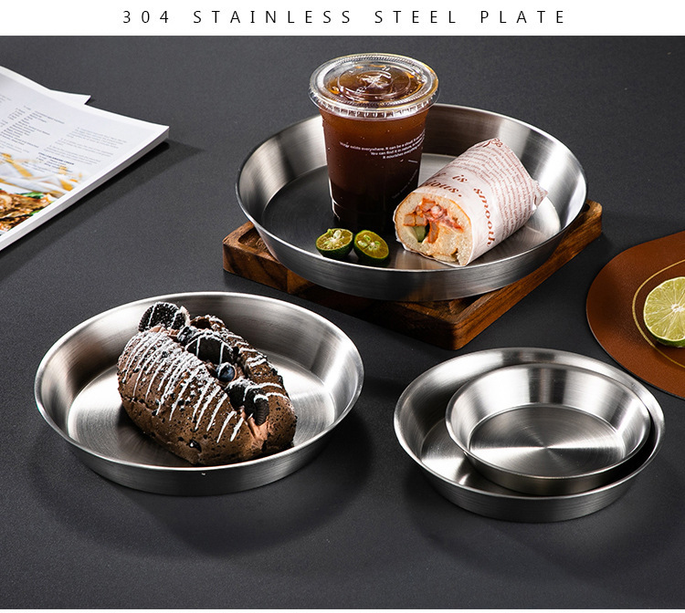 304 스테인레스 스틸 베이킹 디스크 금속 트레이 전자 레인지 베이킹 팬 창조적 인 디스펠 저장 접시 케이크 팬스토어 가기