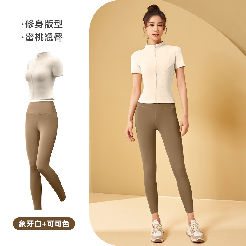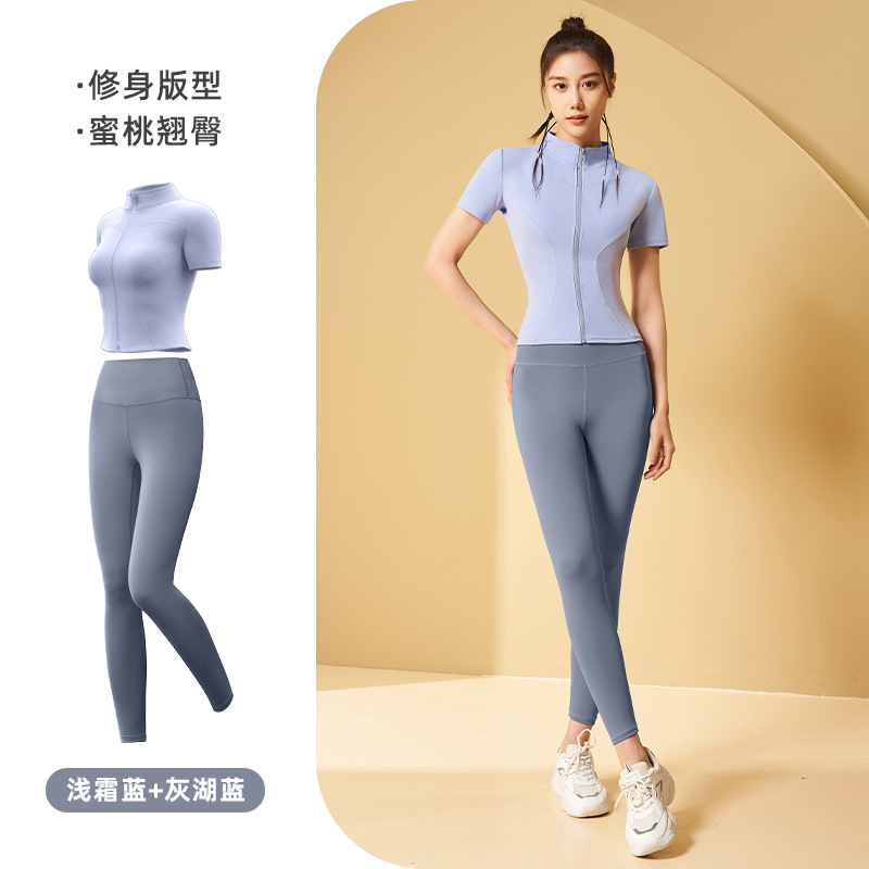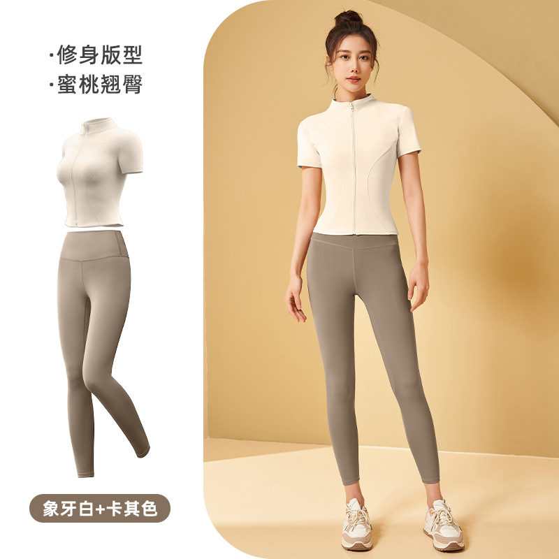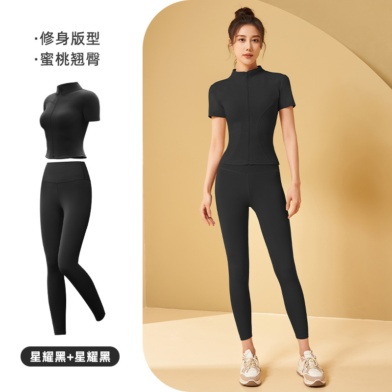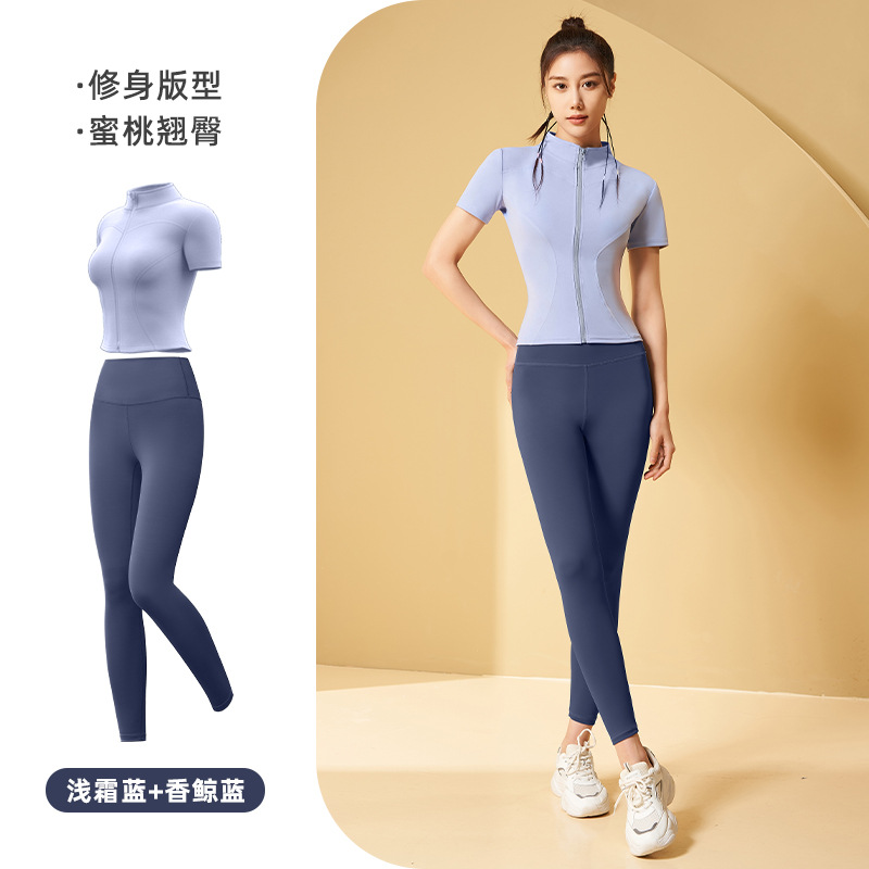 Juyitang 여름 스포츠 세트 고탄성 알몸 느낌 달리기 피트니스 옷 슬림핏 슬리밍 요가 세트 여성스토어 가기