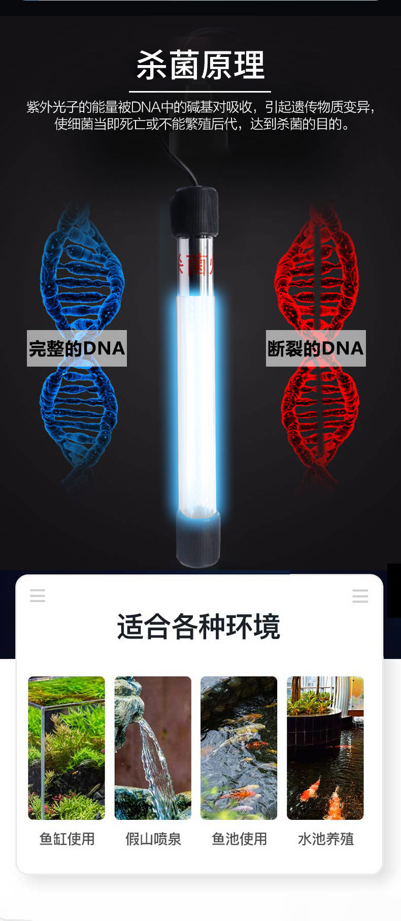 물고기 탱크 램프 UV 살균 램프 물고기 탱크 살균 램프 다이빙 살균 램프 물고기 탱크 수족관 자외선 조류 소독 램프스토어 가기