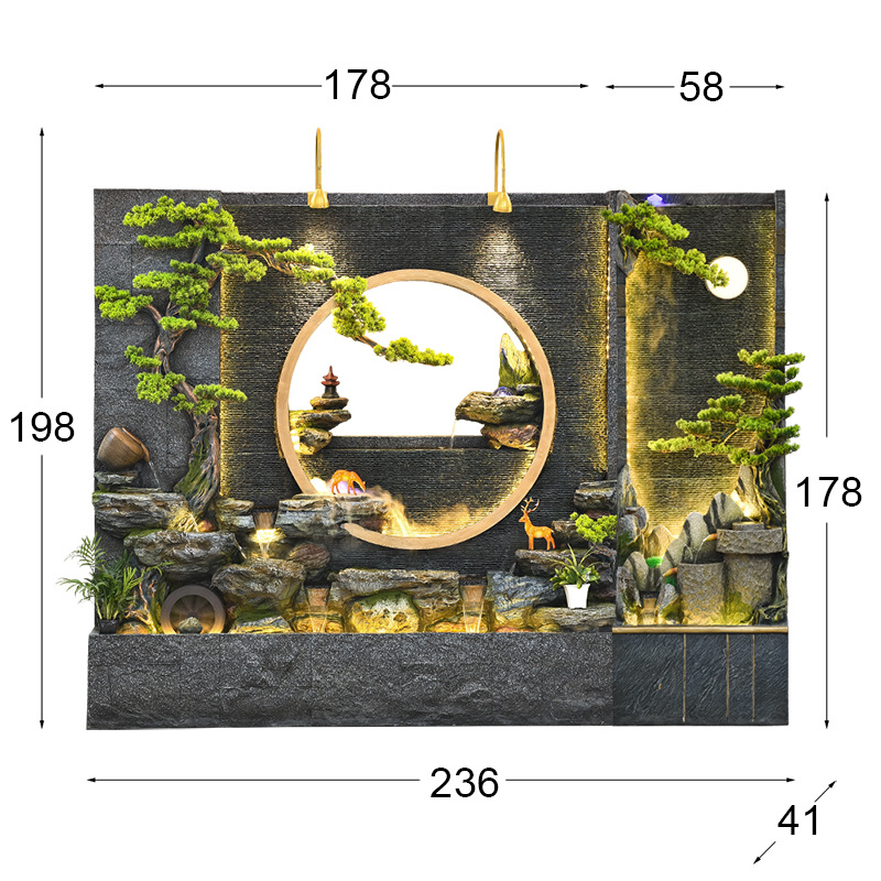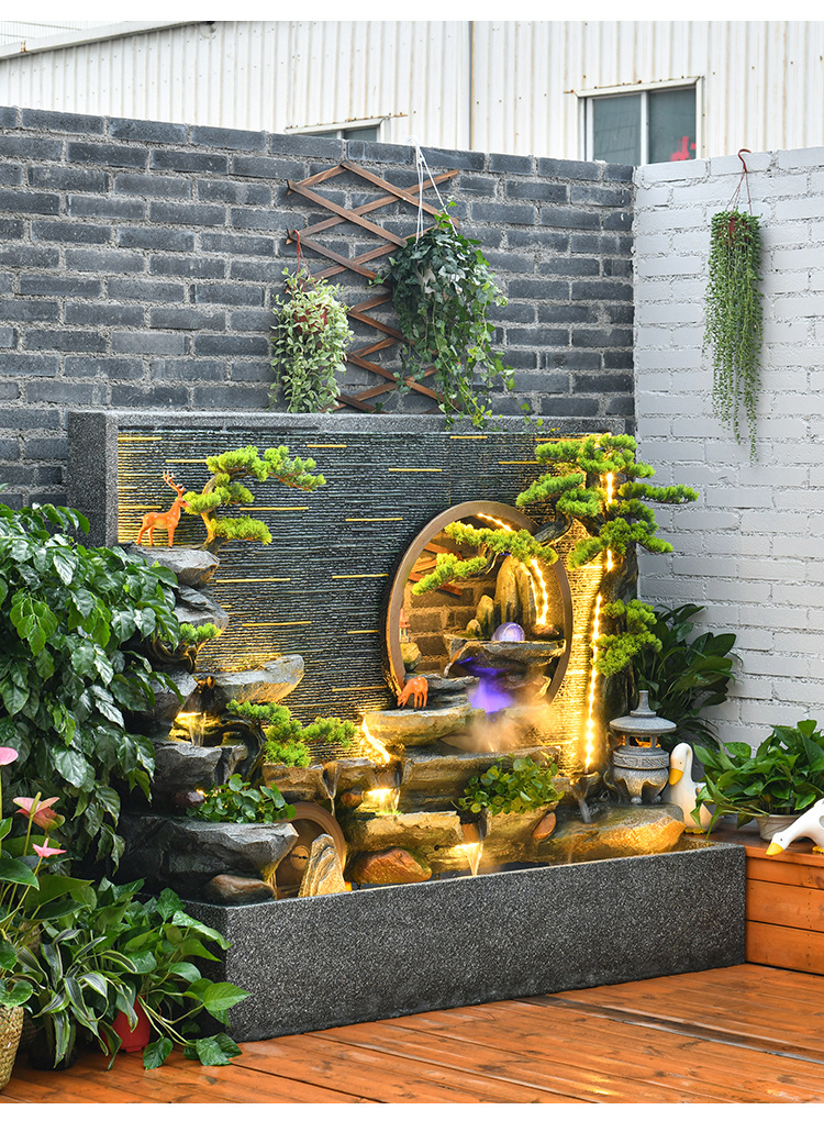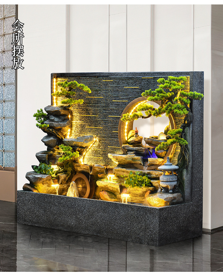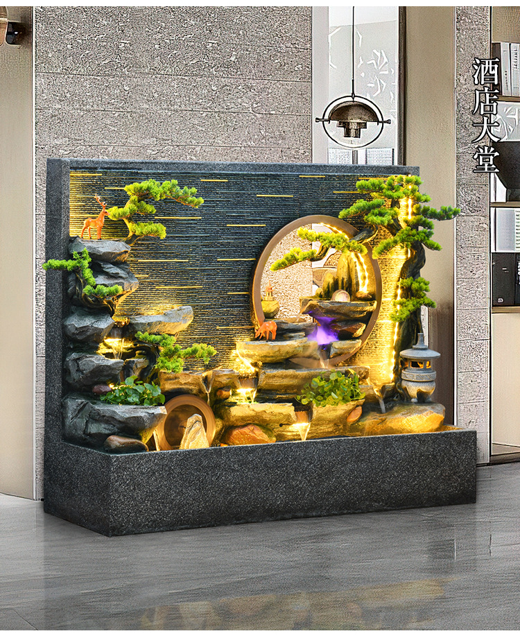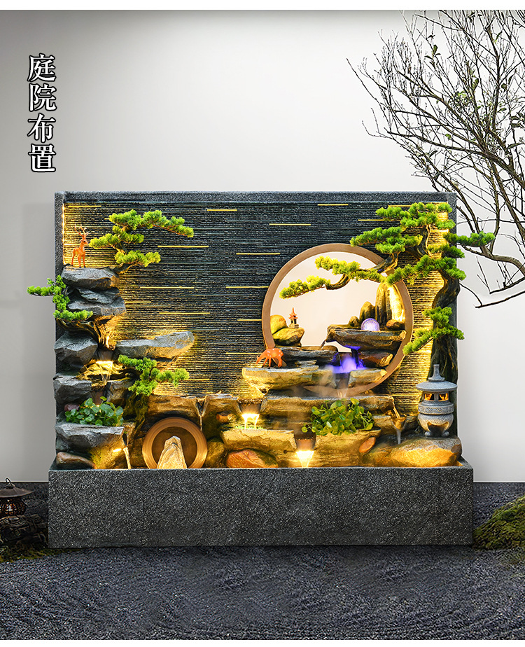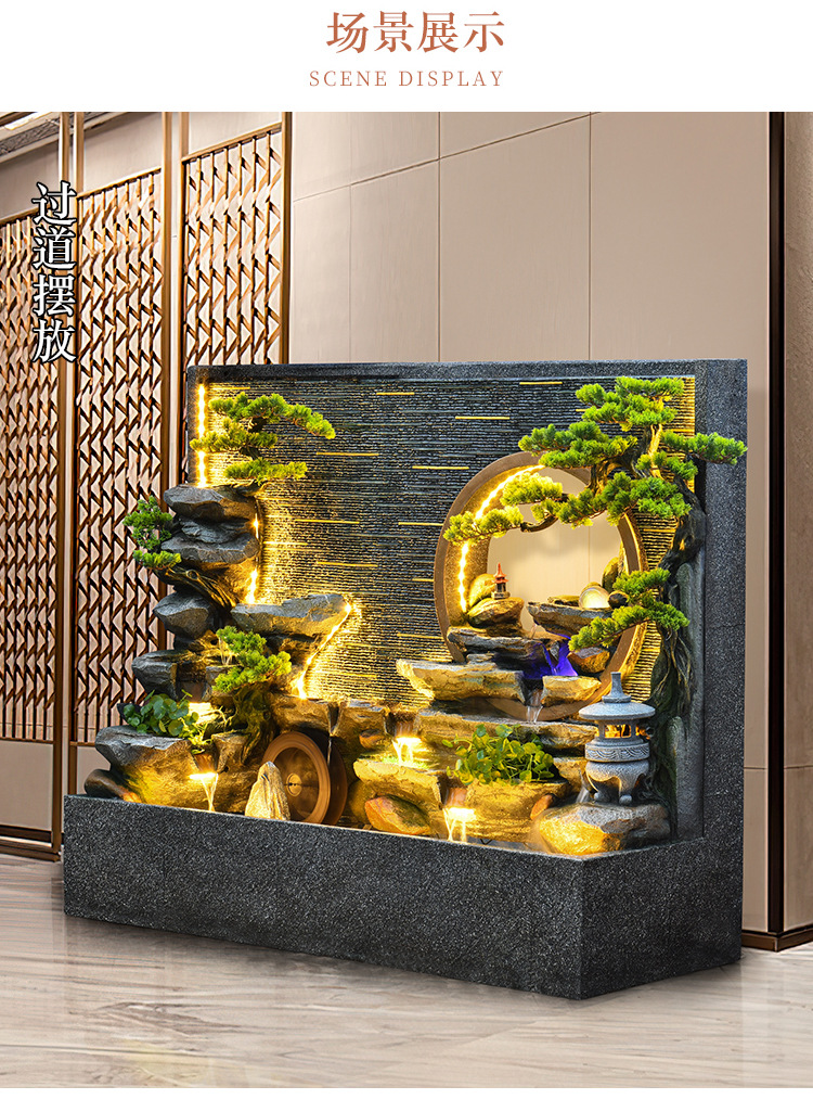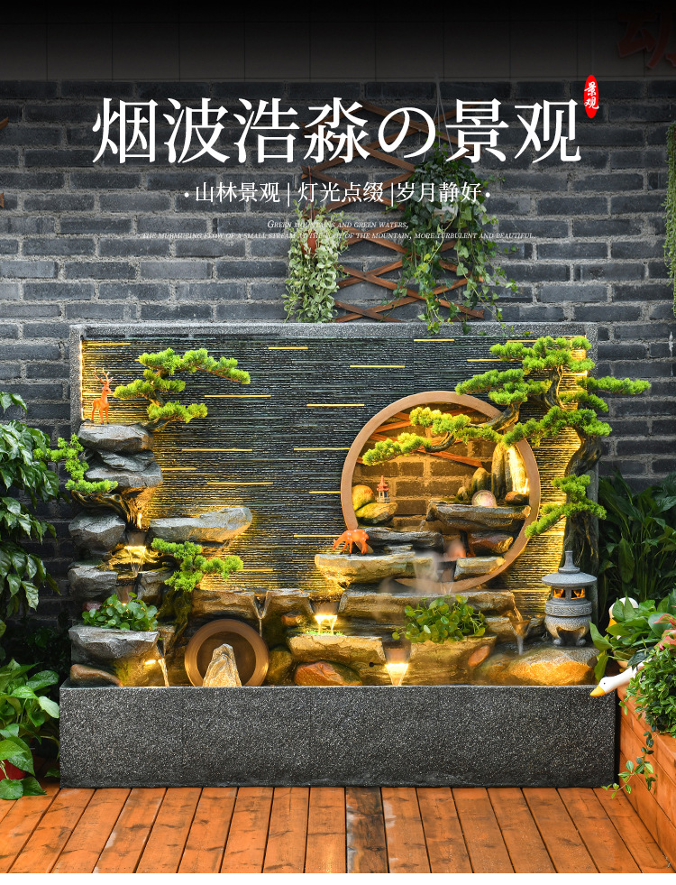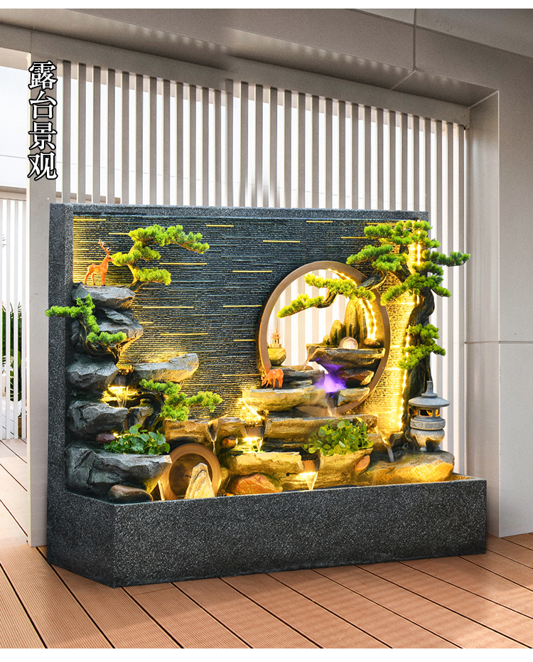 물 커튼 벽 발코니 어항 바위 물 풍경 장식품 안뜰 조경 사무실 실내 흐르는 물 분수 풍경