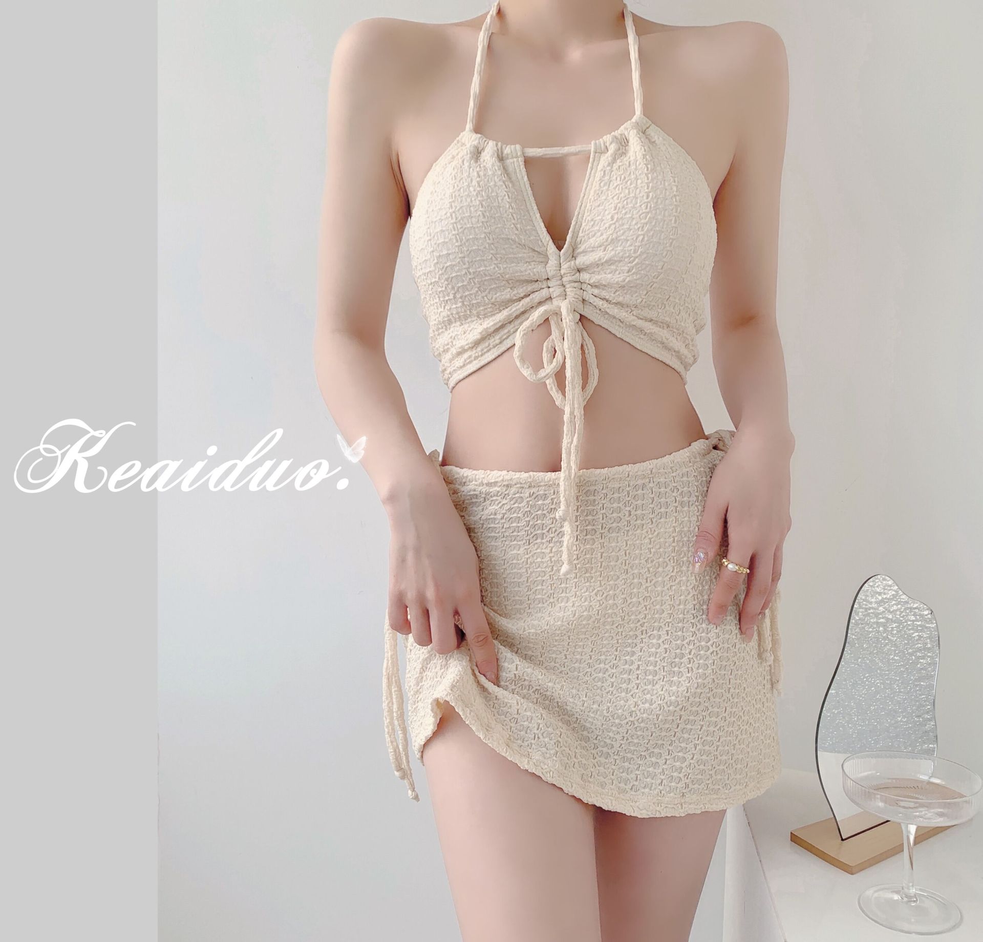 수영복 여성용 2023 새로운 폭발 순수한 욕망 하이 엔드 센스 스플릿 온천 섹시한 3 점 비키니