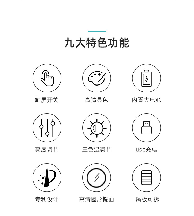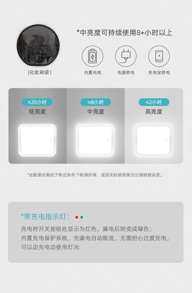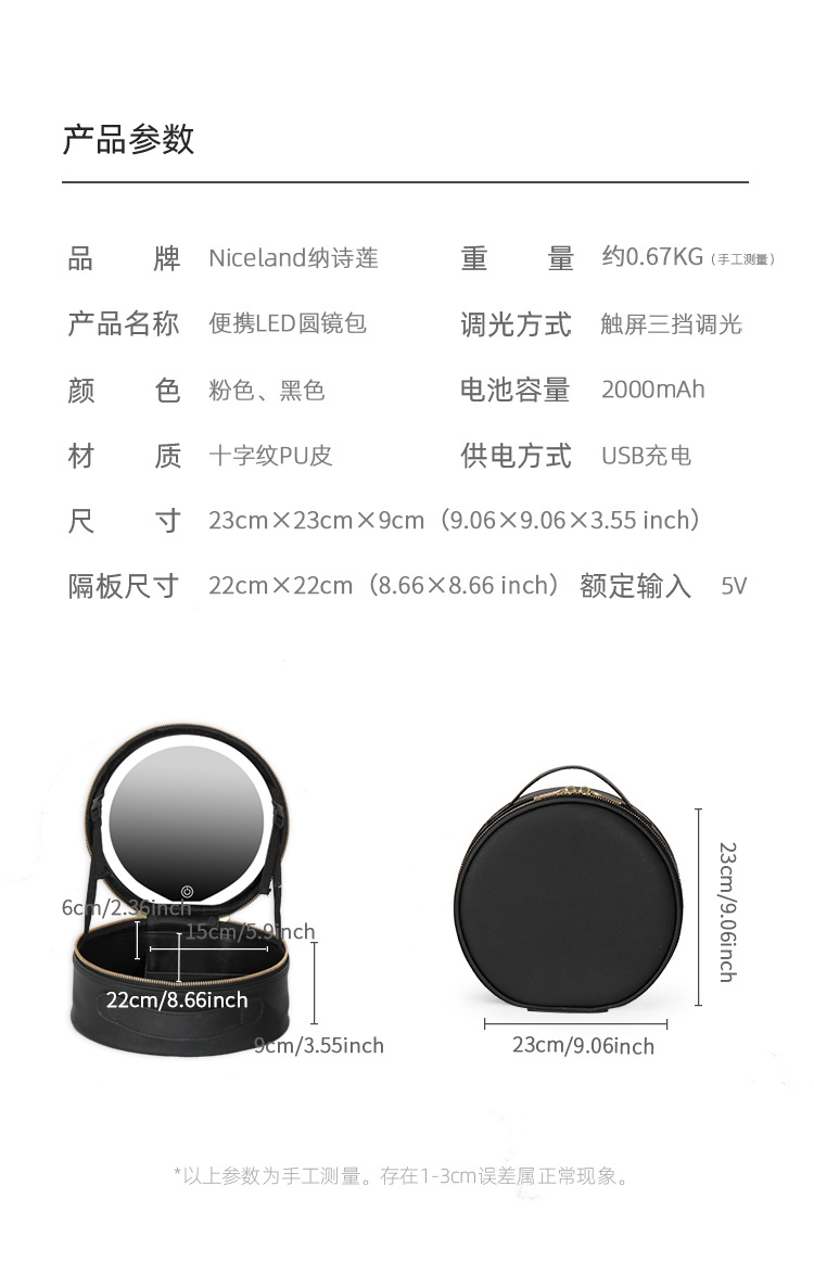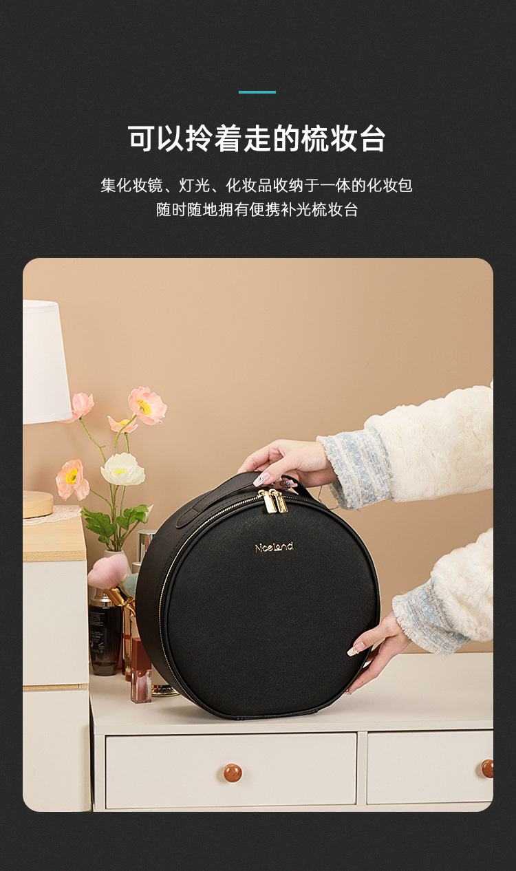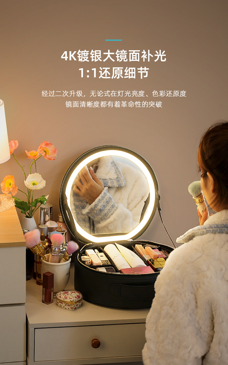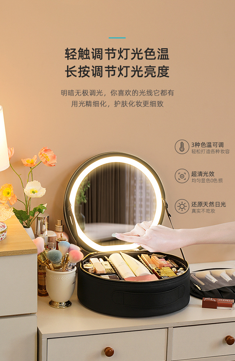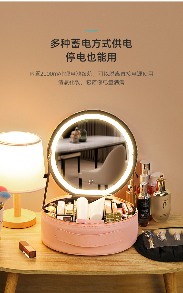 거울 라운드 화장품 가방 메이크업 가방 대용량 여행 휴대용 화장품 보관 가방 Led 빛