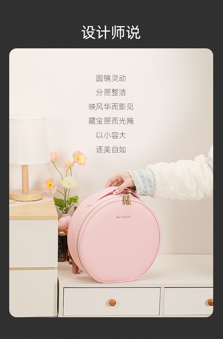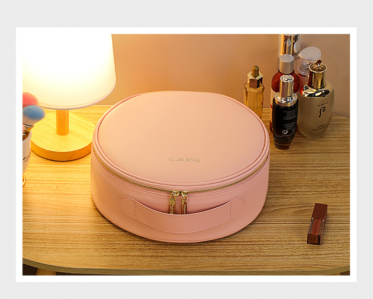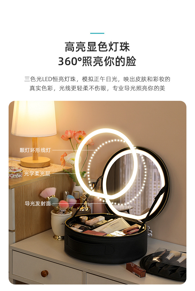 거울 라운드 화장품 가방 메이크업 가방 대용량 여행 휴대용 화장품 보관 가방 Led 빛스토어 가기