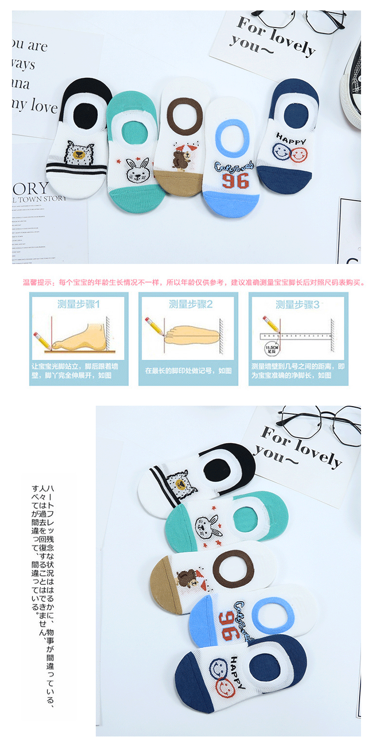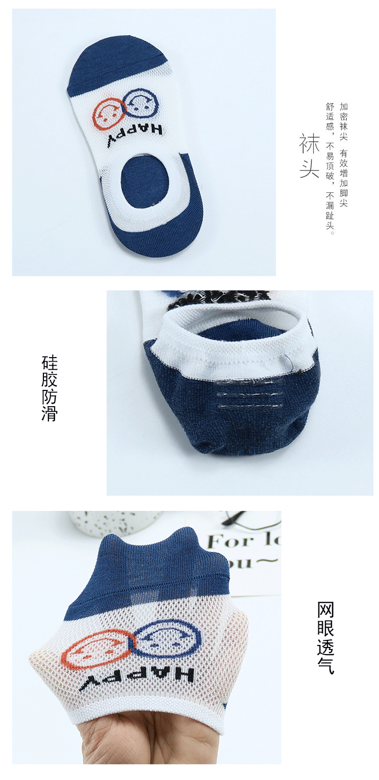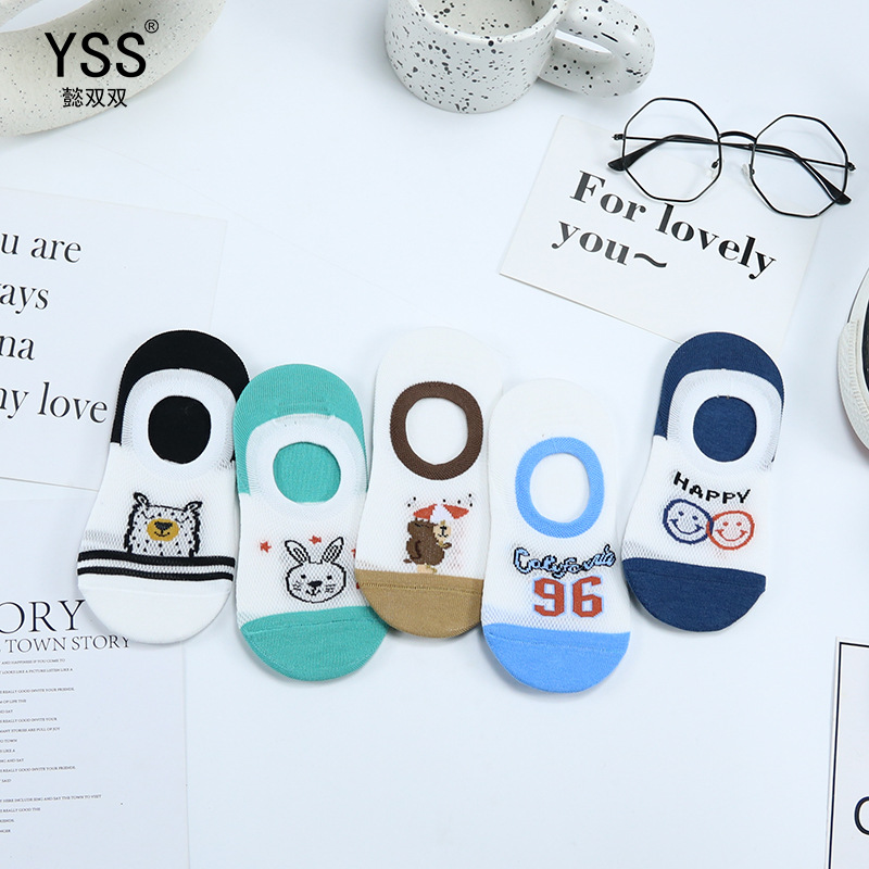 이순신 쌍 어린이 양말 봄과 여름 메쉬 얇은 만화 웃는 보이지 않는 양말 빗질면 실리콘 미끄럼 방지 보트 양말 유행