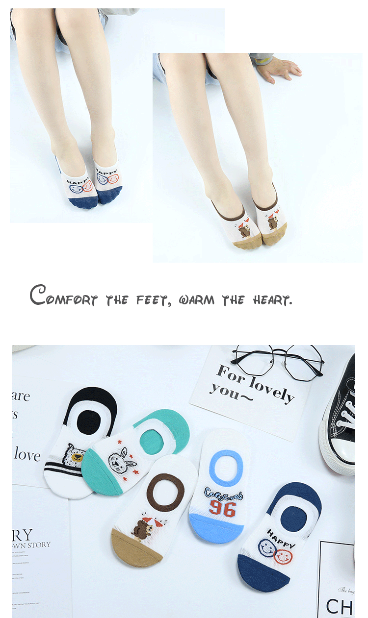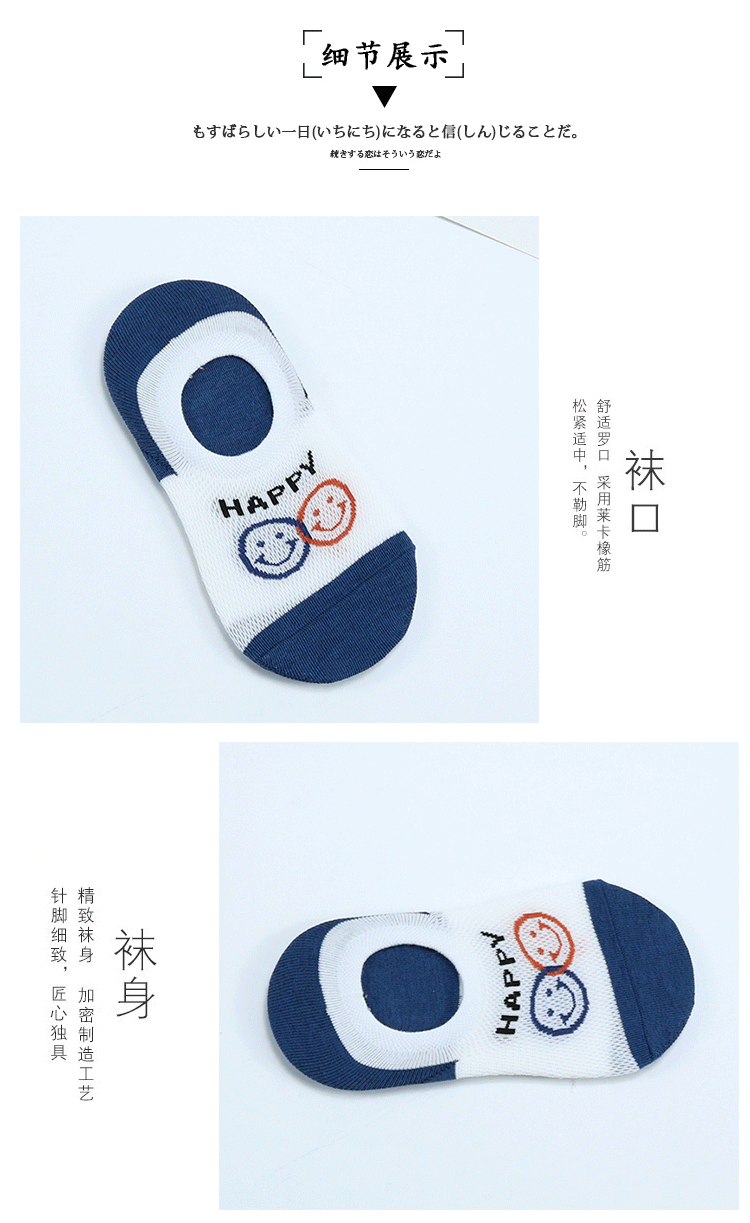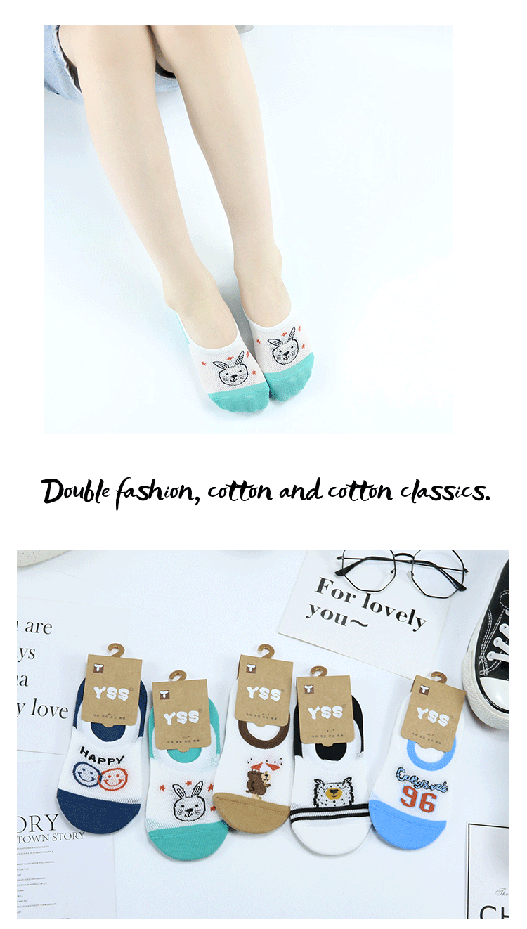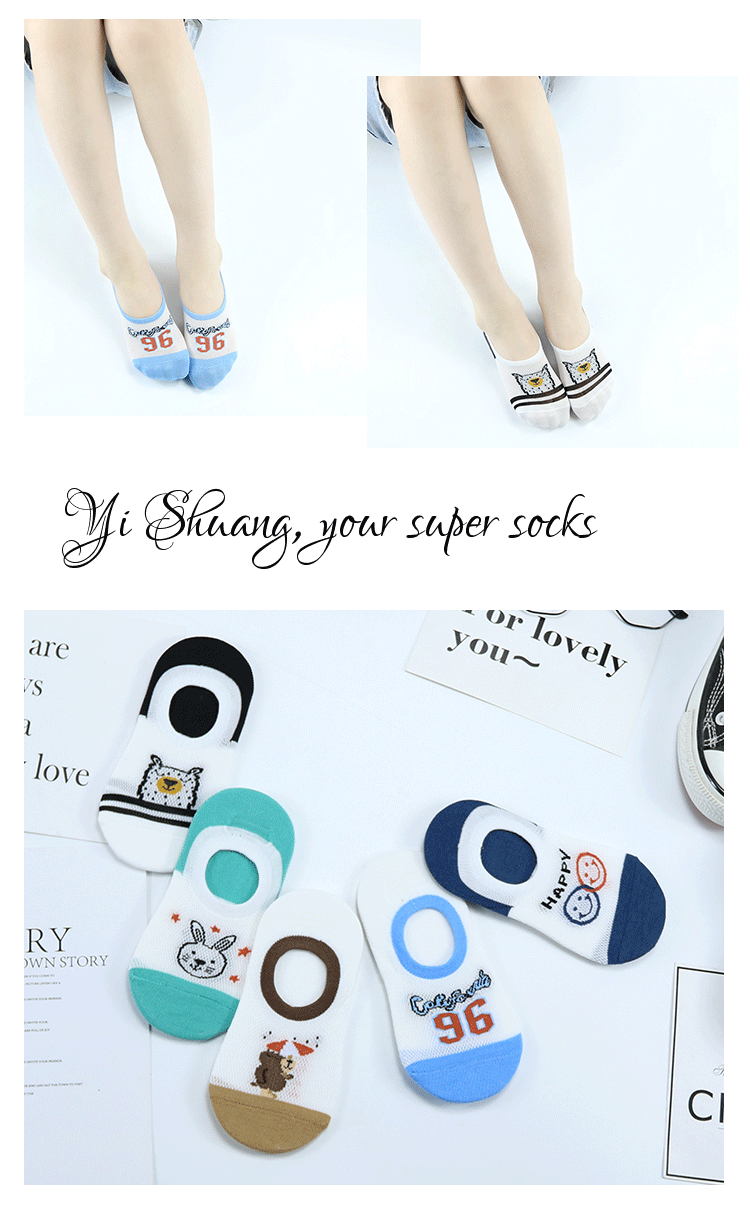 이순신 쌍 어린이 양말 봄과 여름 메쉬 얇은 만화 웃는 보이지 않는 양말 빗질면 실리콘 미끄럼 방지 보트 양말 유행스토어 가기