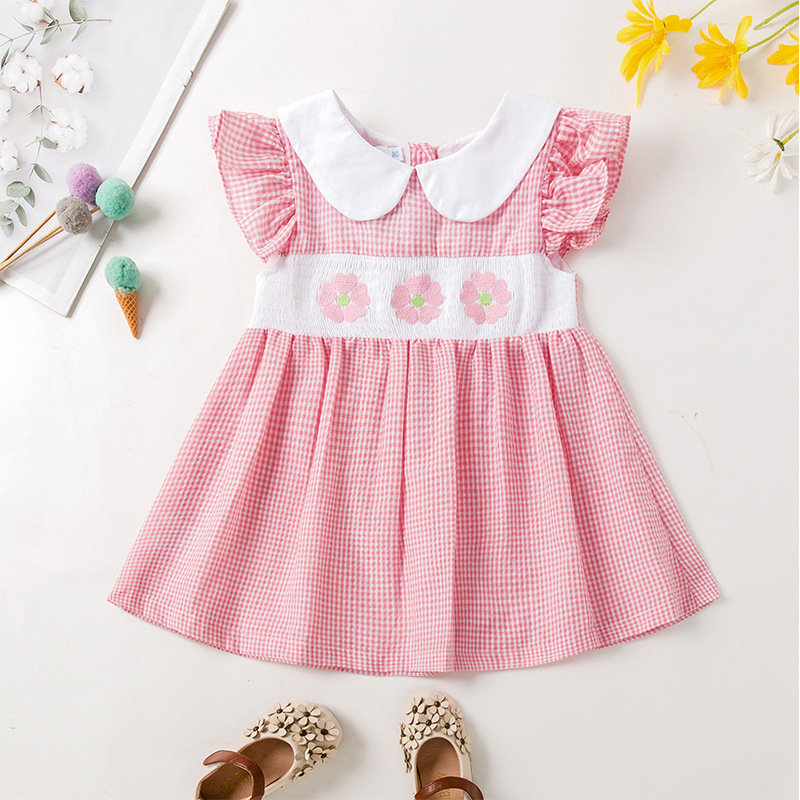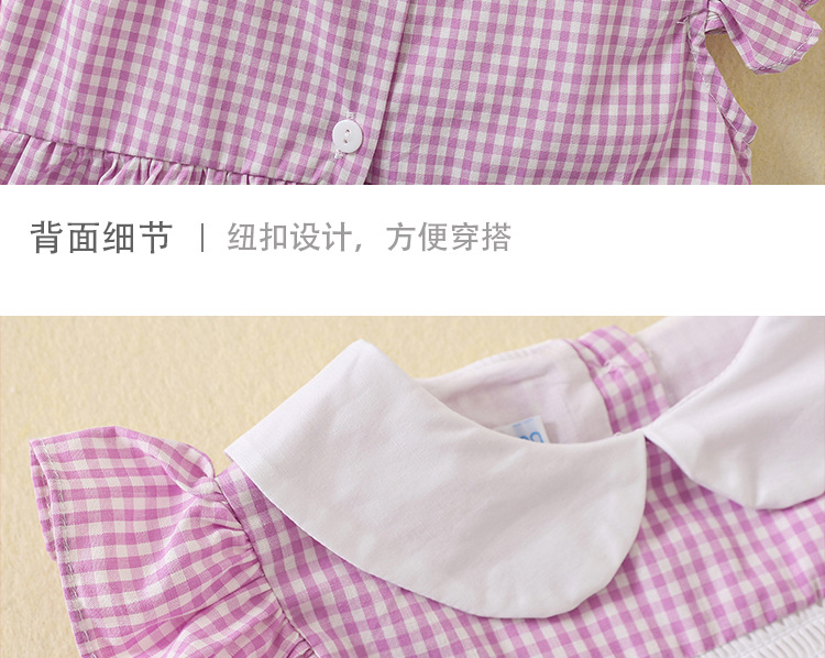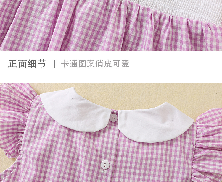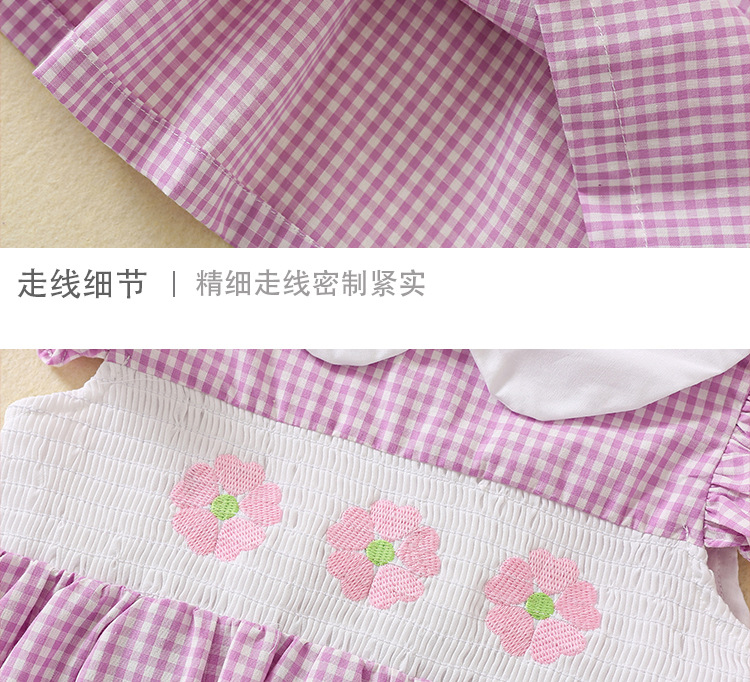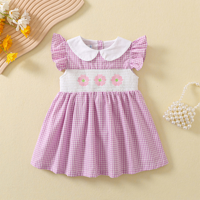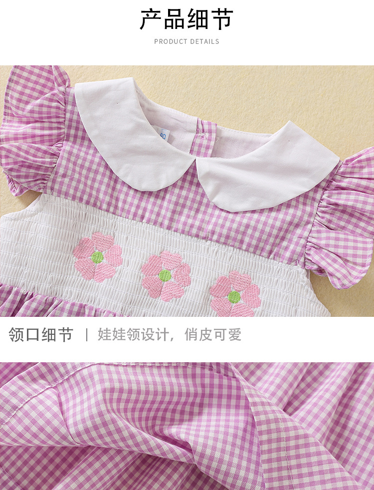 여름 소녀 원피스 복고풍 자수 면 보라색 격자 무늬 치마 귀여운 공주 치마 해외 무역 AliExpress