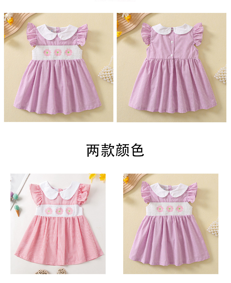 여름 소녀 원피스 복고풍 자수 면 보라색 격자 무늬 치마 귀여운 공주 치마 해외 무역 AliExpress스토어 가기