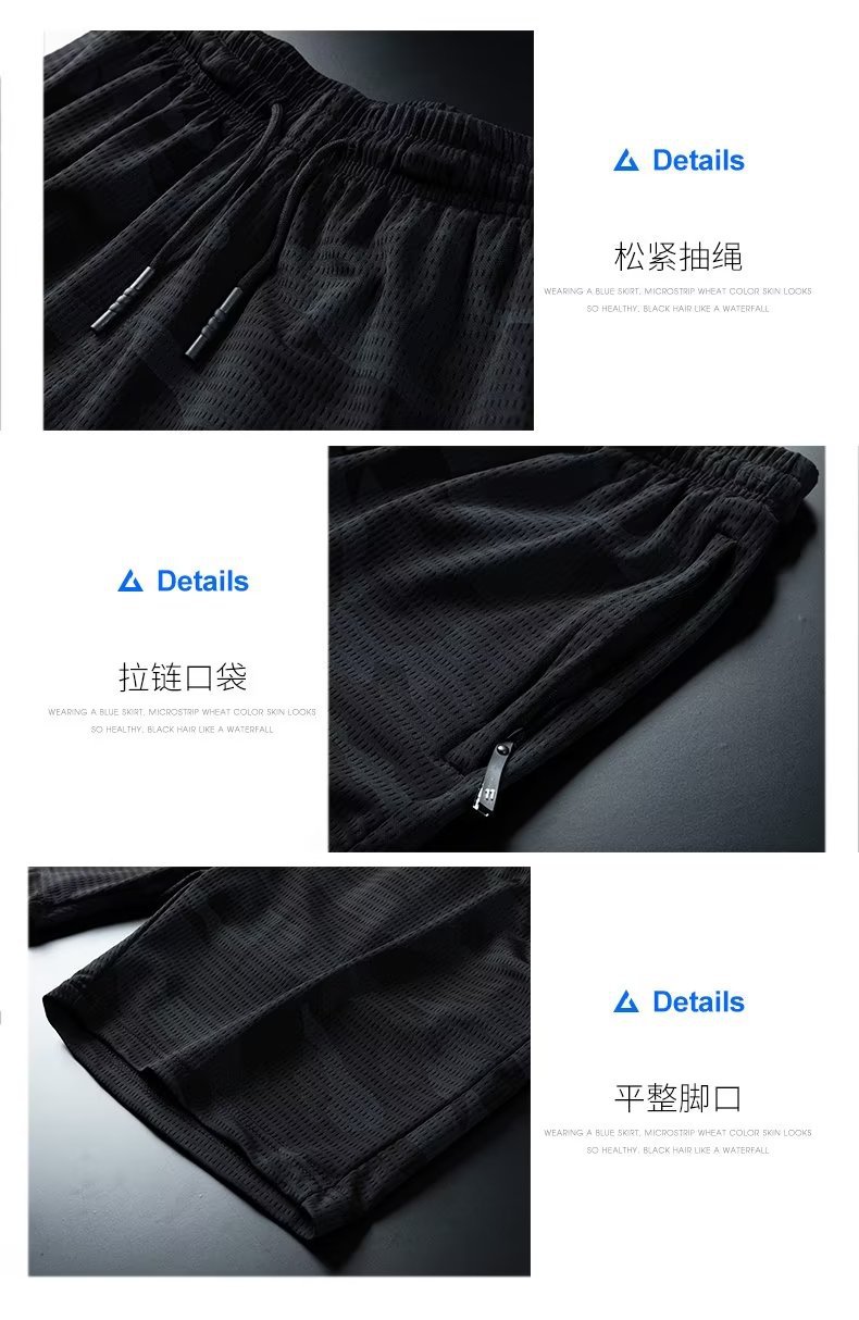 스포츠 반바지 남성용 여름 통기성 속건 아이스 실크 팬츠 피트니스 트레이닝 러닝 메쉬 비치 팬츠