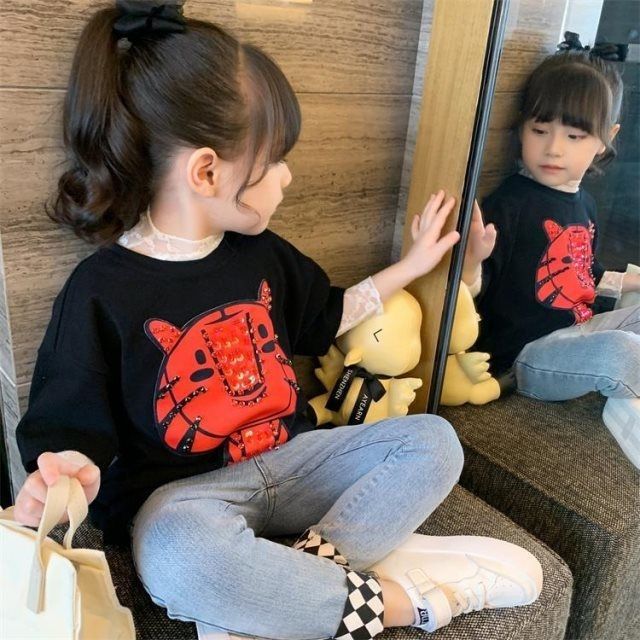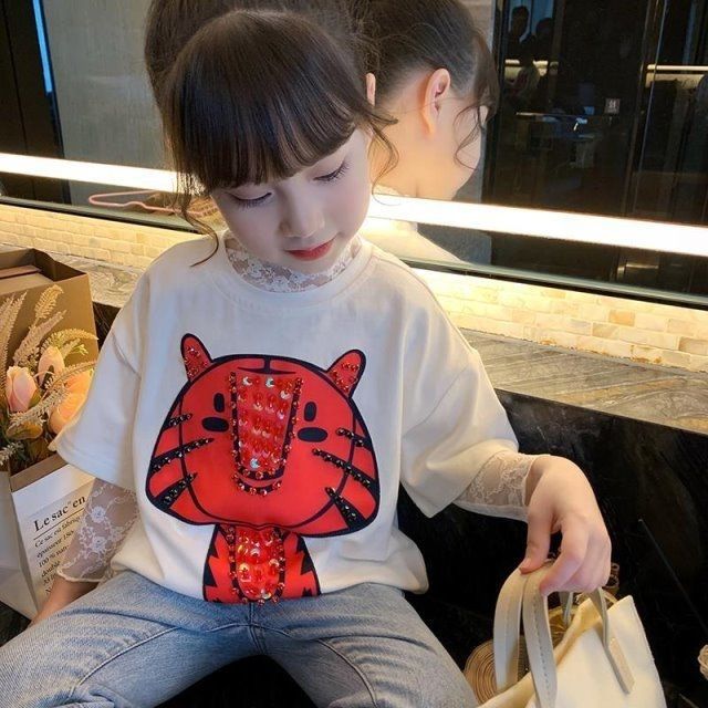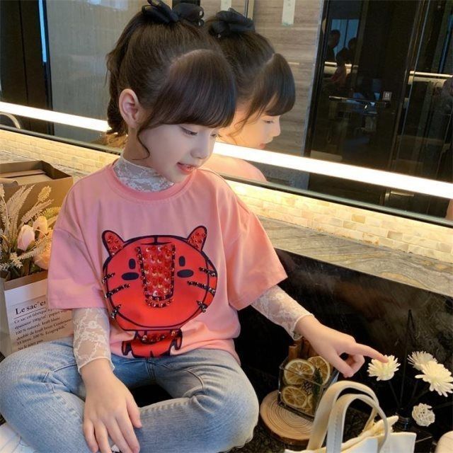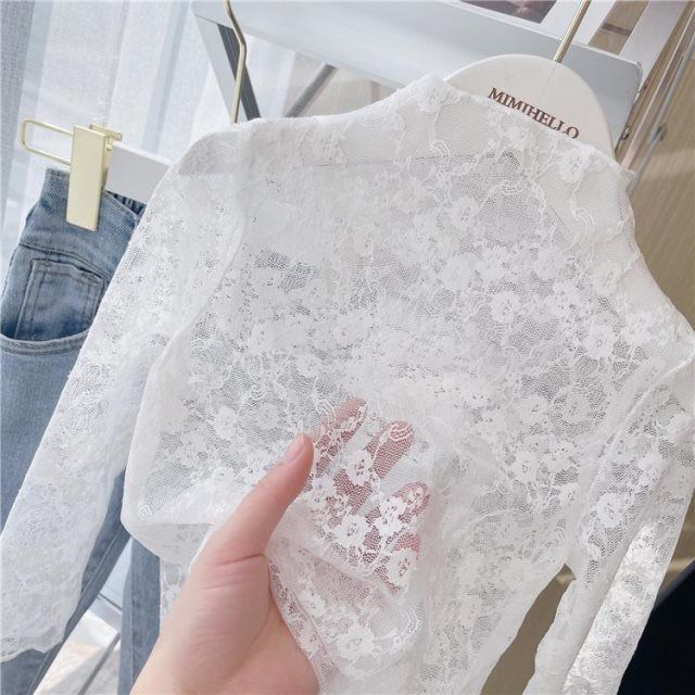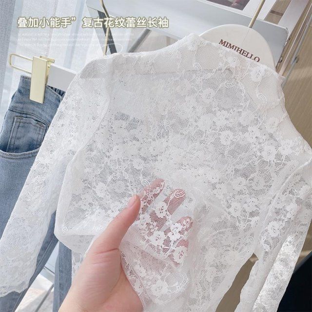 여자 레이스 바닥 셔츠 봄과 여름 긴팔 티셔츠 2025 새로운 스타일 어린이 유행 어린 소녀 흰색 내부 착용스토어 가기