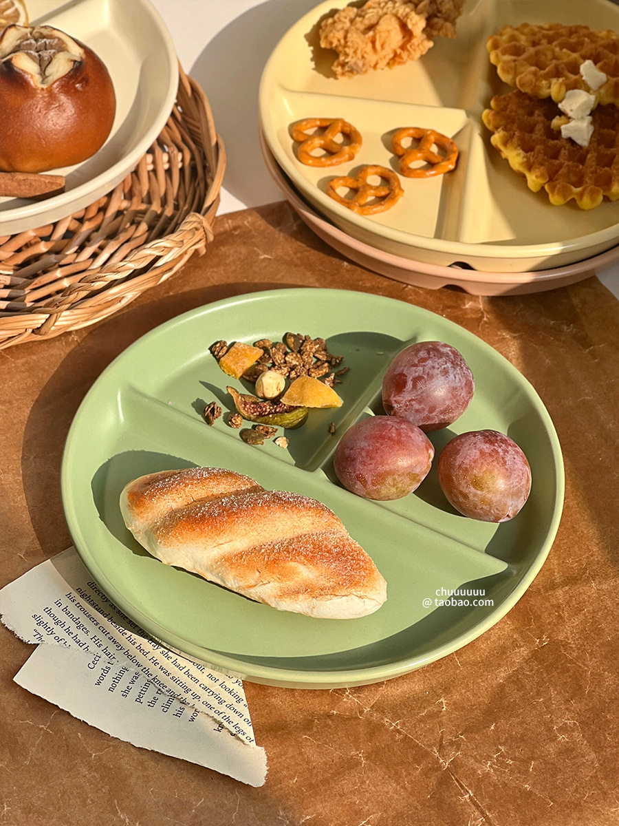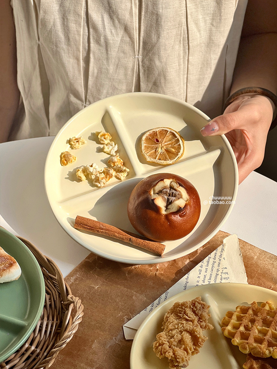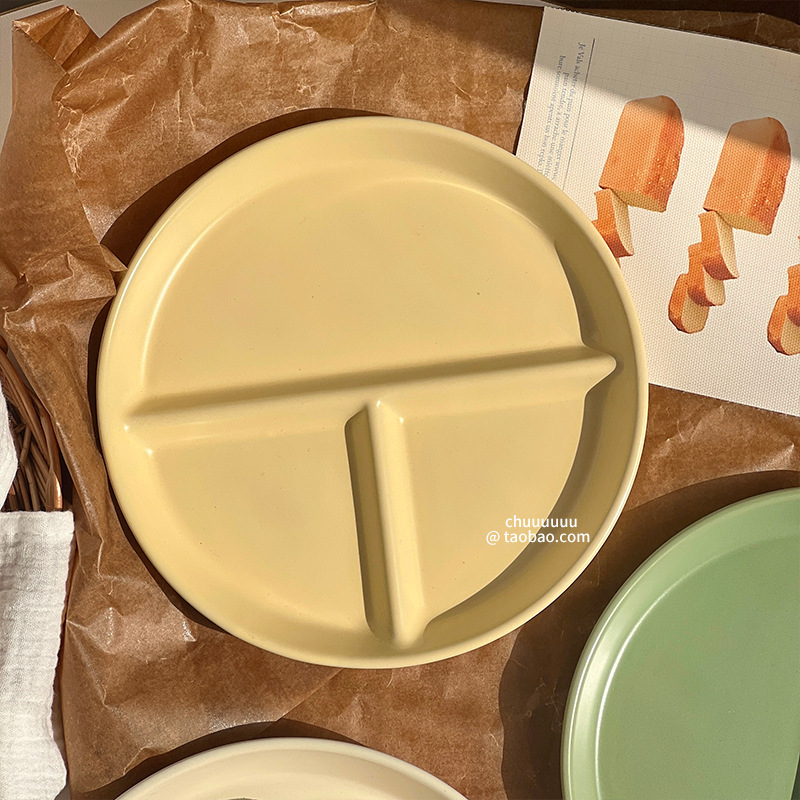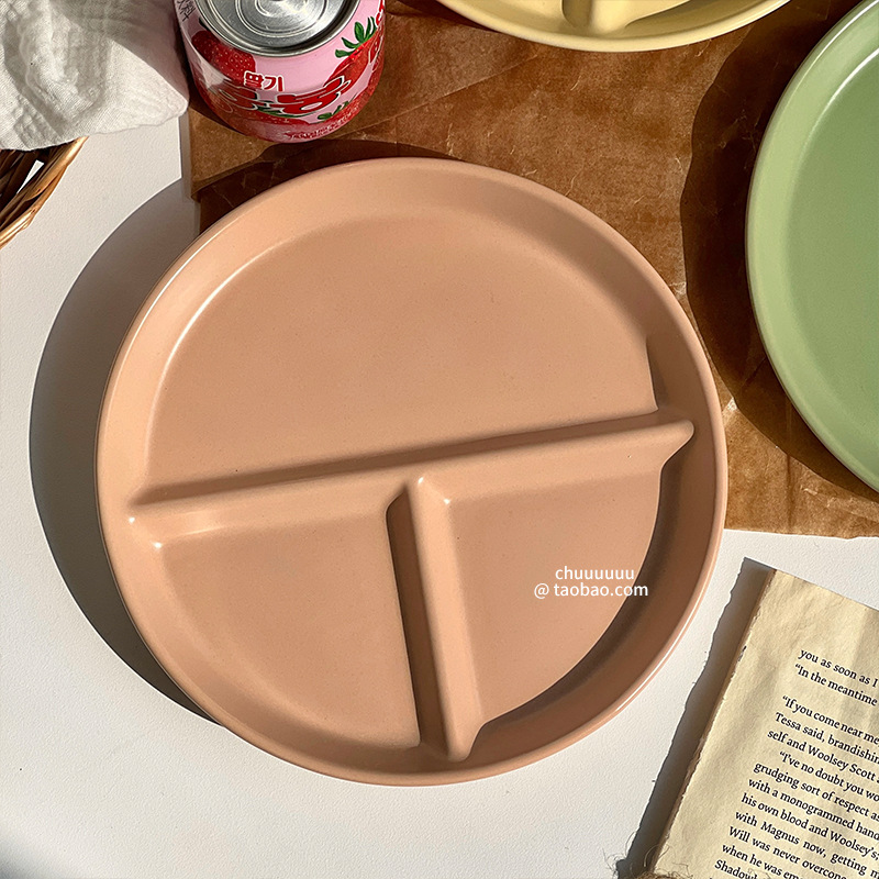 211 디너 플레이트 분할 원형 3칸 세라믹 플레이트 아침 식사 성인 및 어린이 분할 디너 플레이트 체중 감량 과일 플레이트 단순스토어 가기
