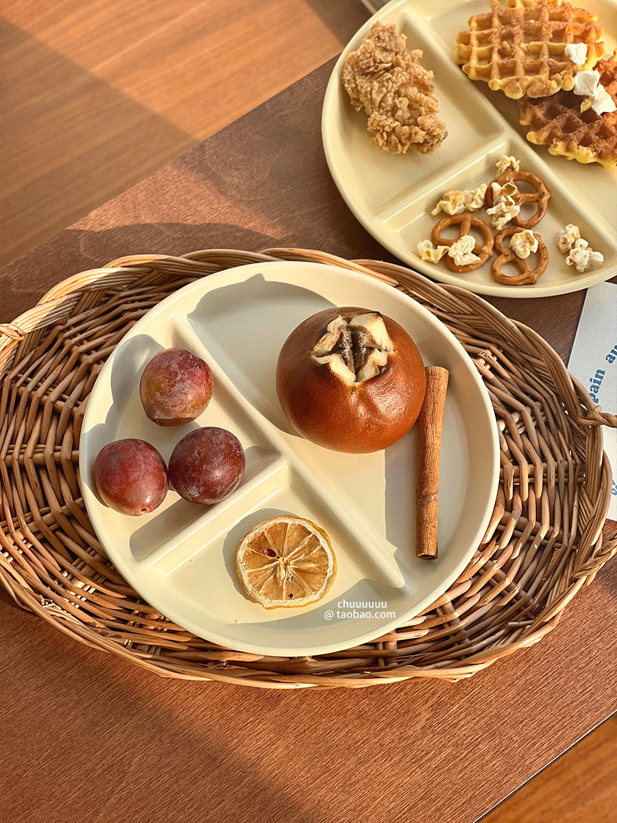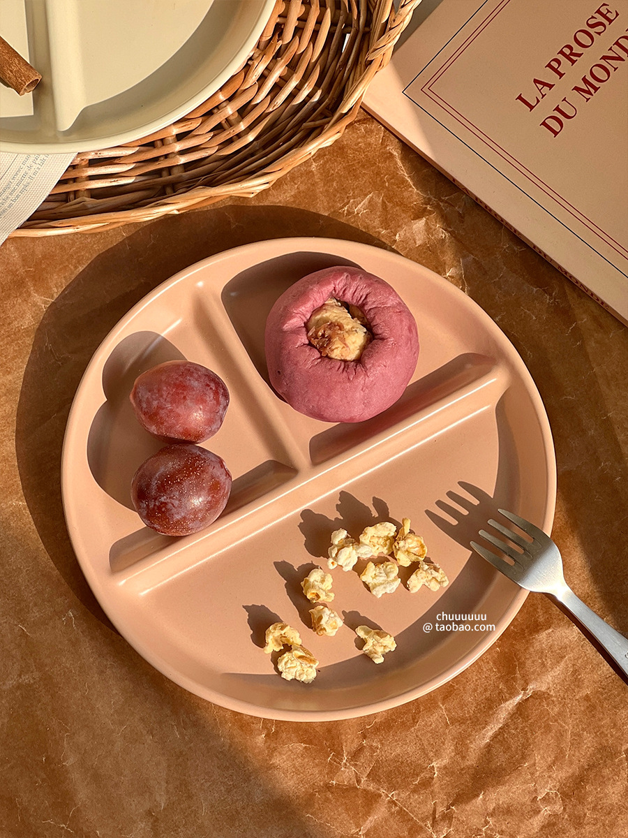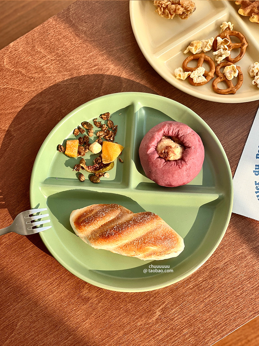 211 디너 플레이트 분할 원형 3칸 세라믹 플레이트 아침 식사 성인 및 어린이 분할 디너 플레이트 체중 감량 과일 플레이트 단순스토어 가기