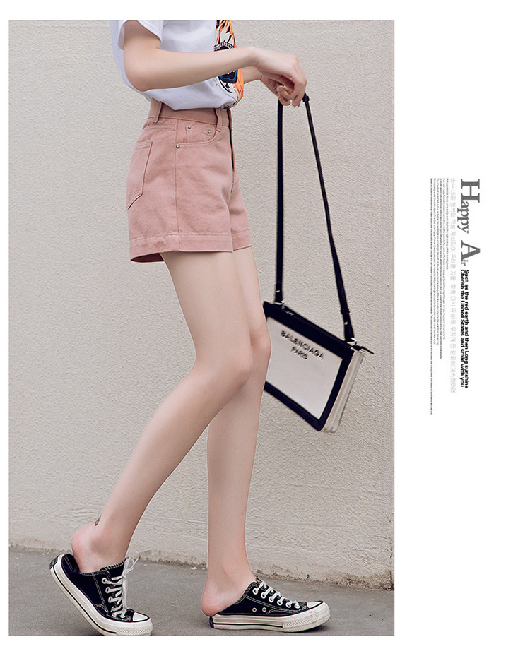 핑크 데님 반바지 여자의 여름 얇은 2023 새로운 하이 웨이스트 느슨한 슬리밍 A 라인 와이드 레그 캐주얼 핫 팬츠