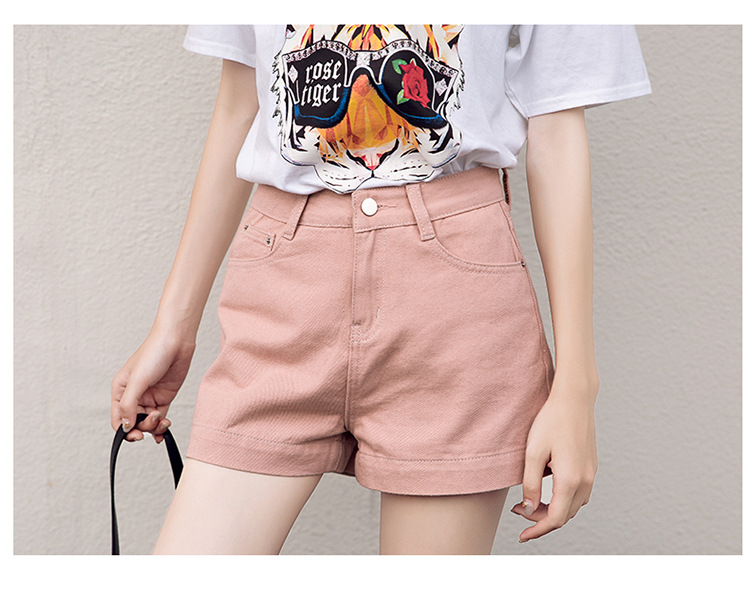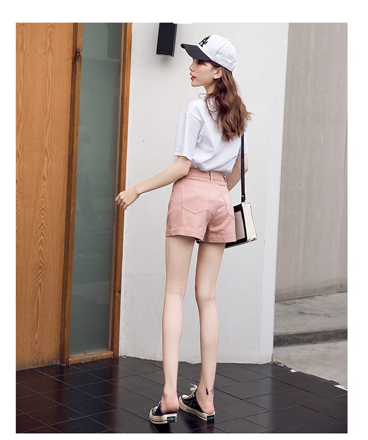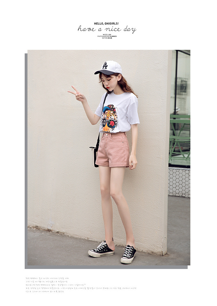 핑크 데님 반바지 여자의 여름 얇은 2023 새로운 하이 웨이스트 느슨한 슬리밍 A 라인 와이드 레그 캐주얼 핫 팬츠스토어 가기