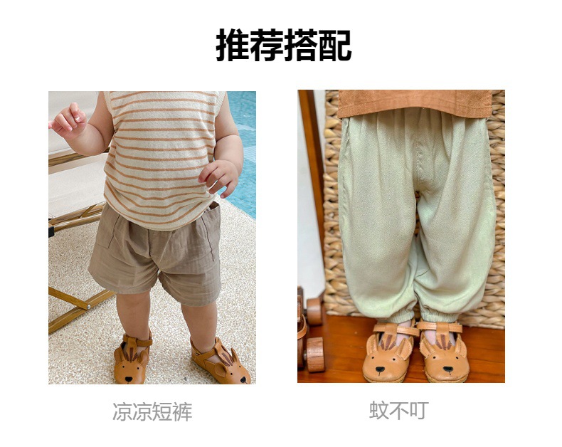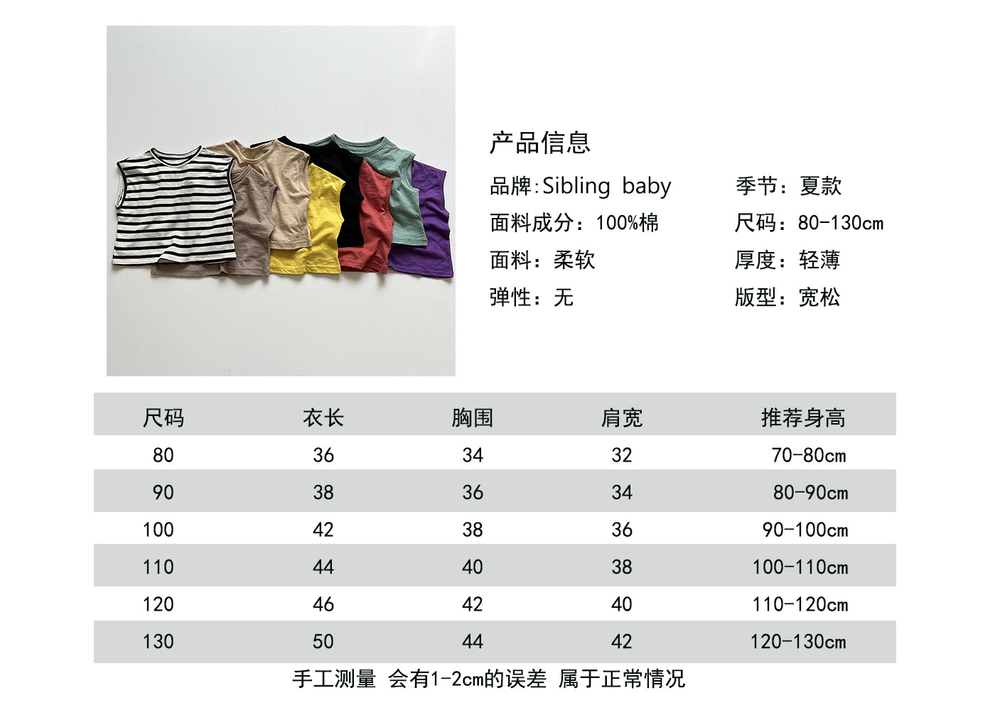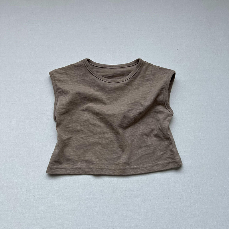 재고 여름 새로운 한국 스타일 어린이 조끼 대나무 면 칸 소매 소년과 소녀 아기 면 부드러운 왁스 면