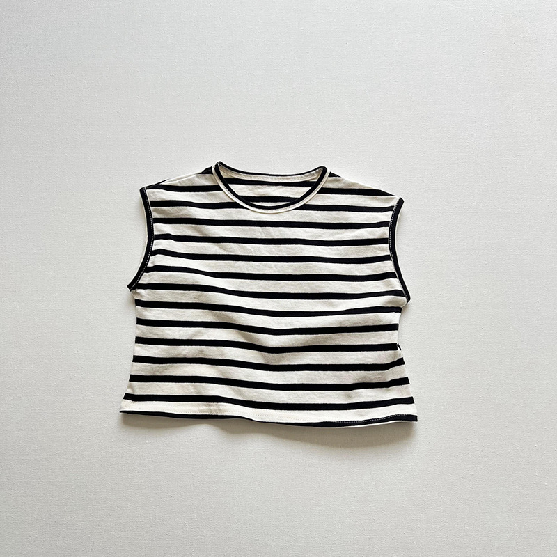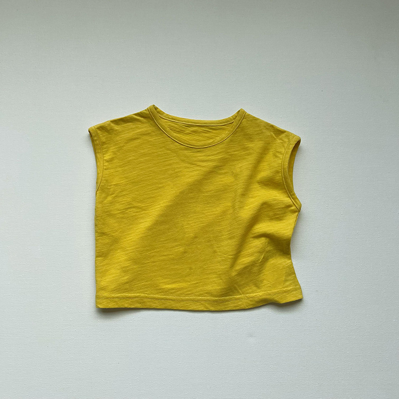 재고 여름 새로운 한국 스타일 어린이 조끼 대나무 면 칸 소매 소년과 소녀 아기 면 부드러운 왁스 면스토어 가기