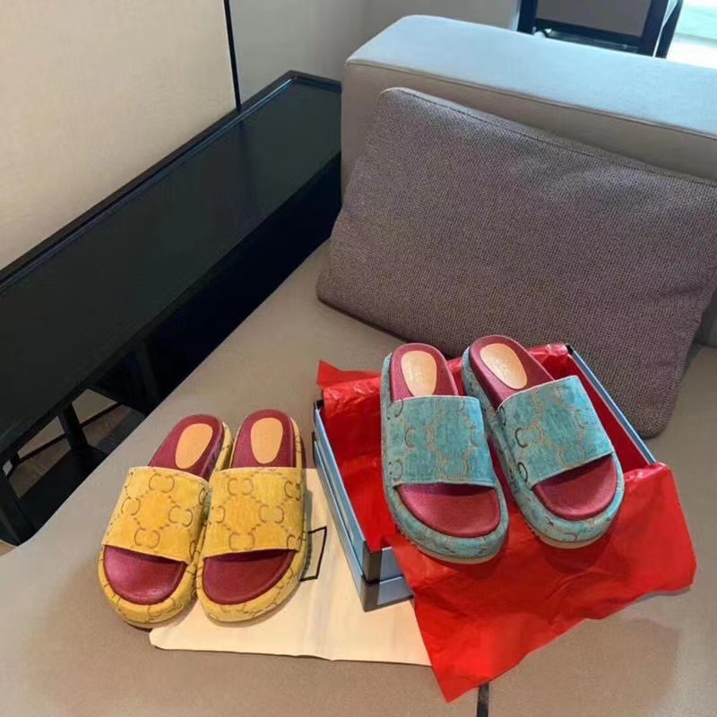 2023 새로운 스타일 사이버 연예인 슬리퍼 자수 슬리퍼 인쇄 커플 플랫폼 캐주얼 여성 샌들스토어 가기