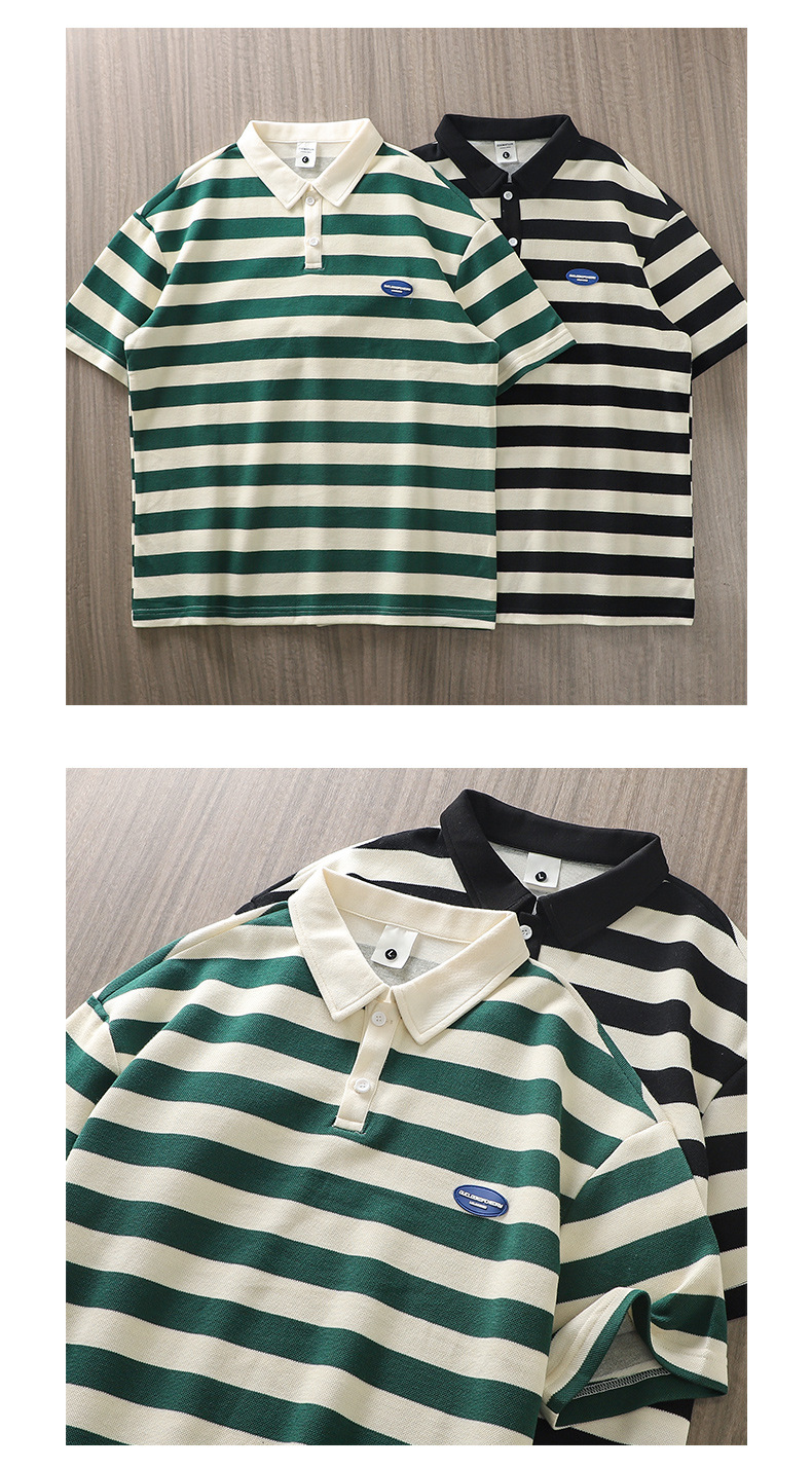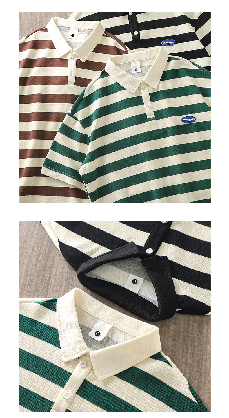 도매 여름 옷깃 반팔 남성 티셔츠 폴로 셔츠 한국 패션 잘 생긴 줄무늬 반 소매 티셔츠 남성 탑