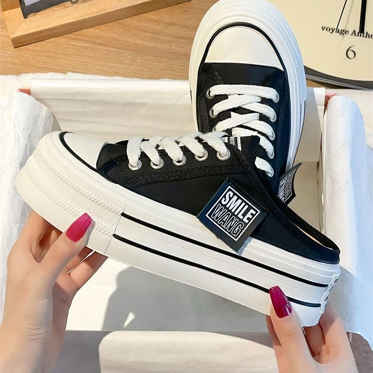 대외 무역 Baotou 하프 슬리퍼 여성 신발 2023 여름 새로운 스타일 외부 착용 두꺼운 단독 샌들 게으른 슬립 온 여성용 캐주얼 슬리퍼스토어 가기