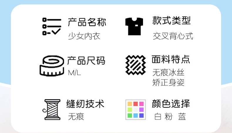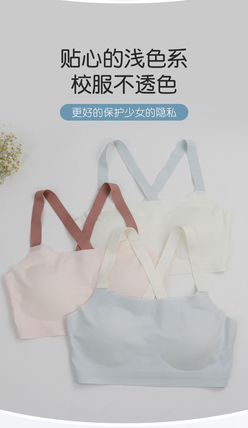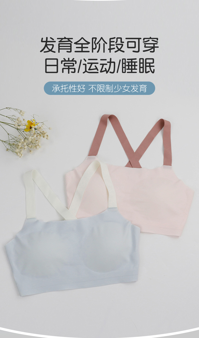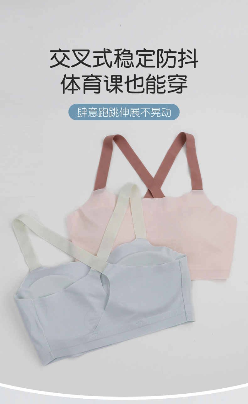 여름 발달기 여아용 서스펜더, 초중학생용 크로스 컬러 배색 아름다운 등받이 아이스 실크 심리스 스포츠 브라스토어 가기