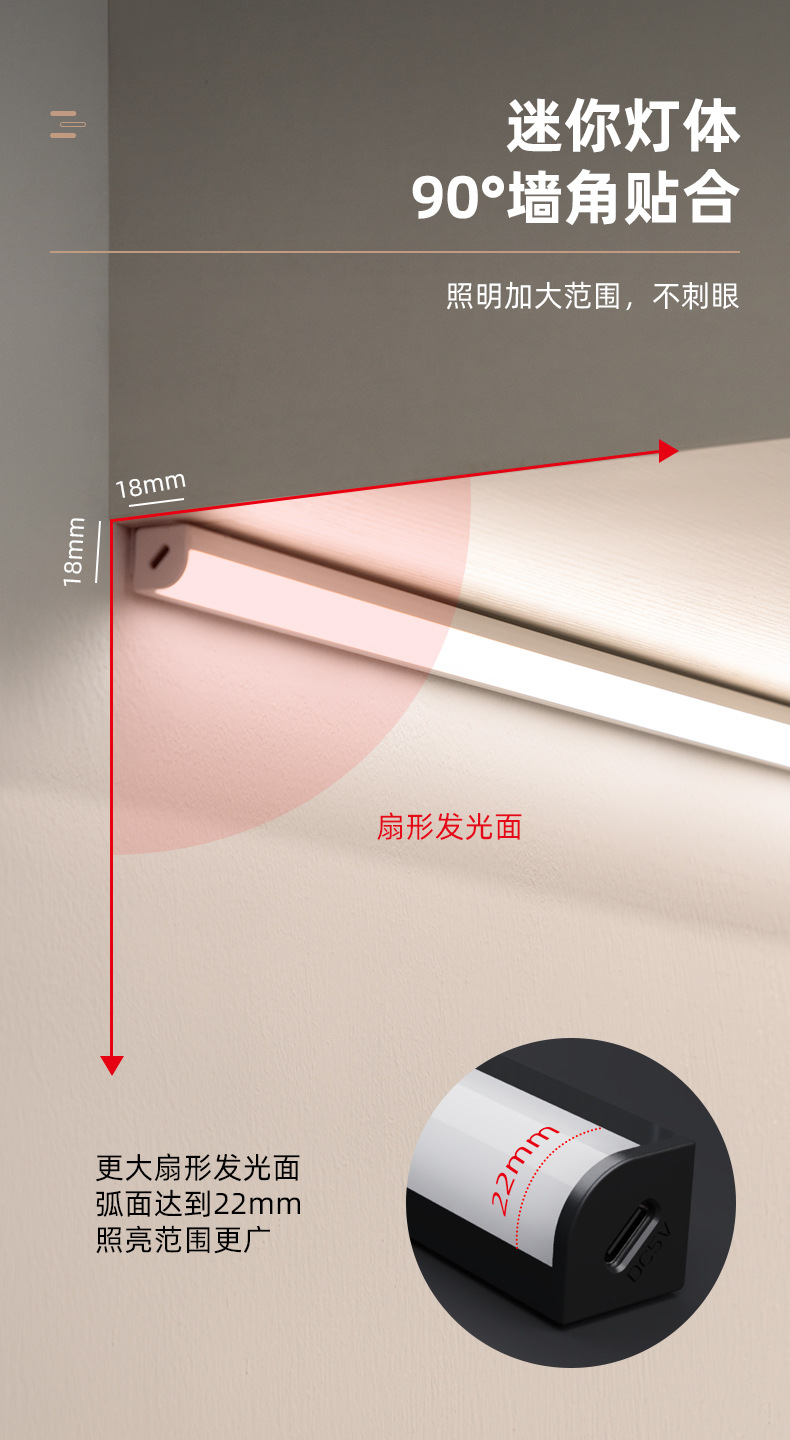 도매 옷장 LED 야간 조명 홈 인덕션 라이트 무선 스마트 리모콘 유도 직각 조명 조명 야간 조명