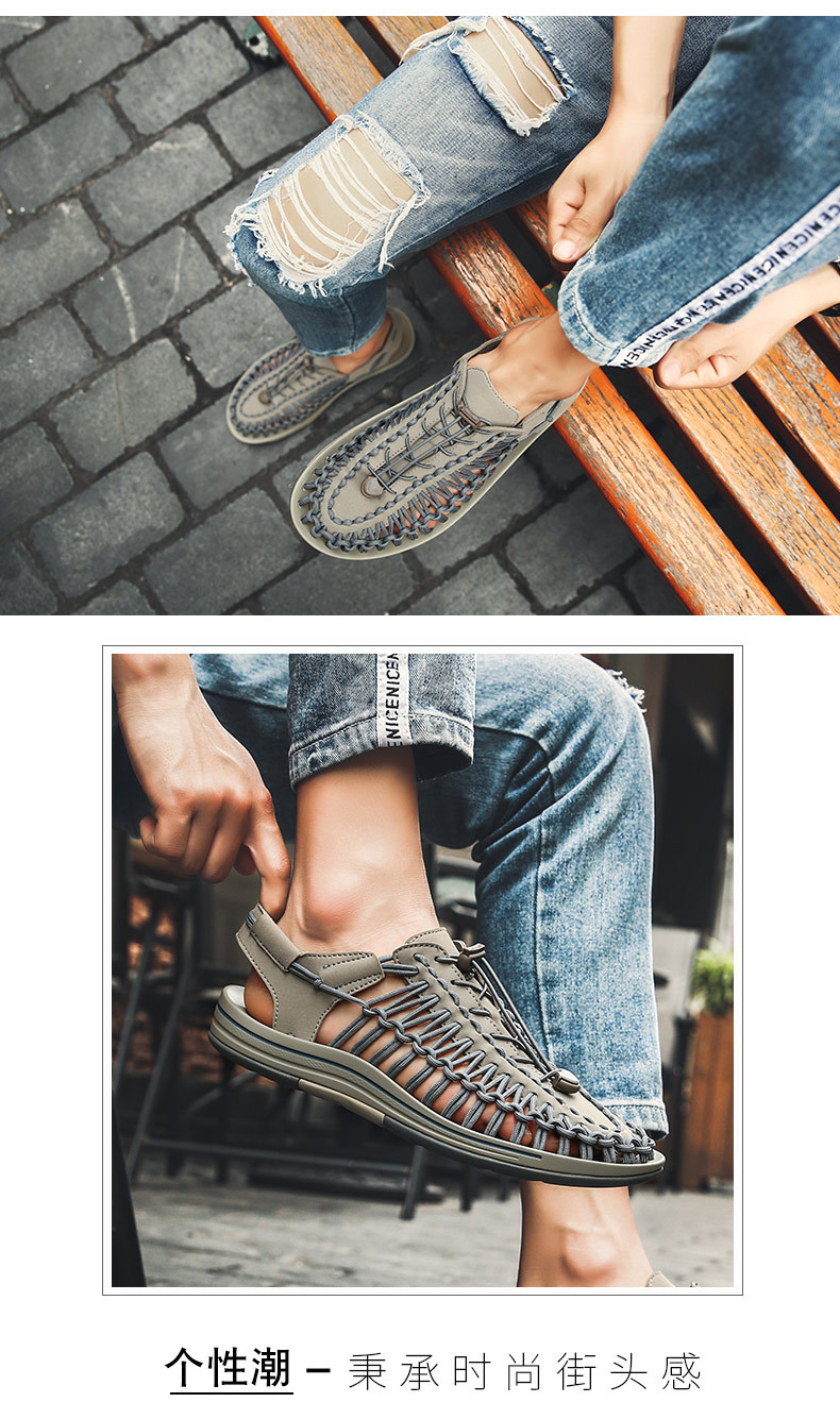 크로스 보더 플러스 사이즈 여름 한국식 유행 손으로 짠 샌들 캐주얼 스포츠 두꺼운 밑창 통기성 연인 신발 비치 신발