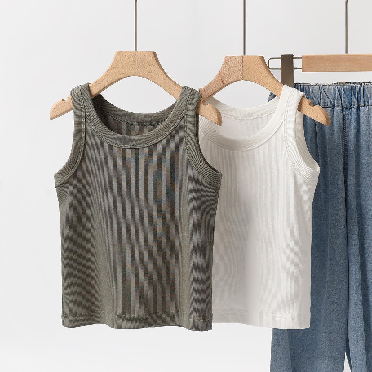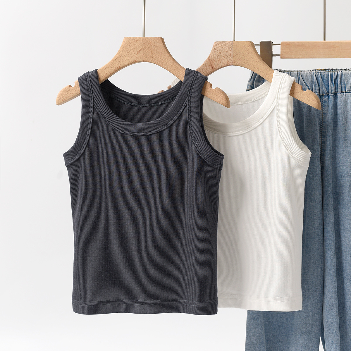 유코시 어린이 조끼 소년 소녀 아기 단색 항균 수분 흡수 및 땀 흘림 피부 친화적 기본 기본 셔츠 여름