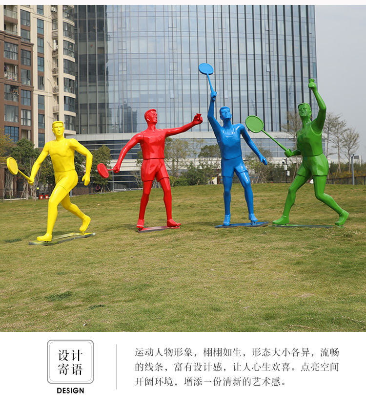 야외 FRP 추상 스포츠 캐릭터 조각 공원 경치 좋은 장소 달리기 농구 배드민턴 풍경 장식품