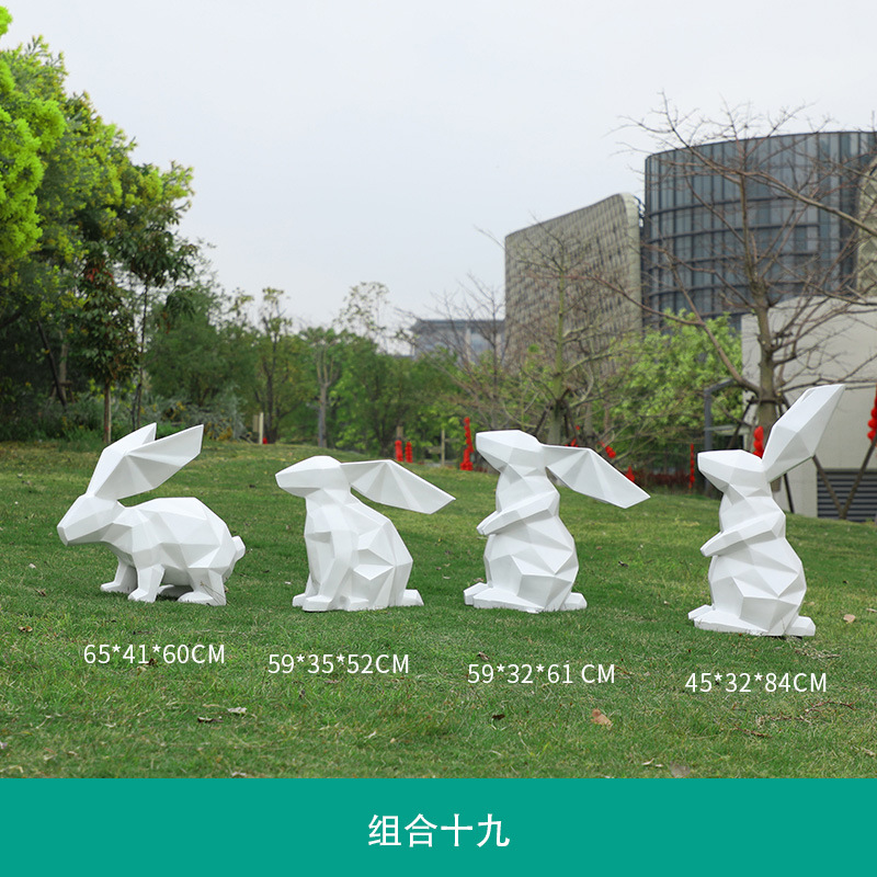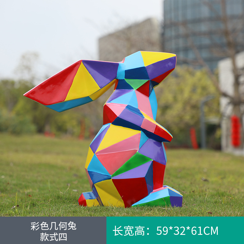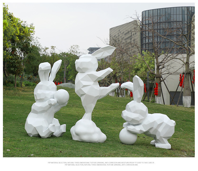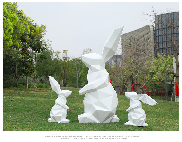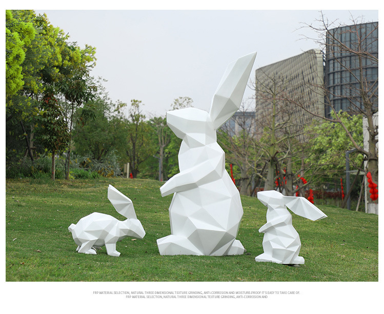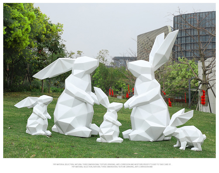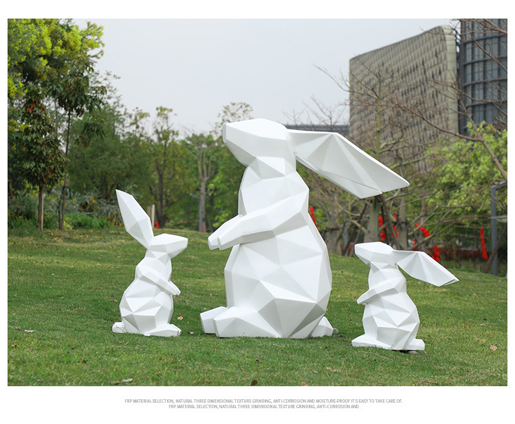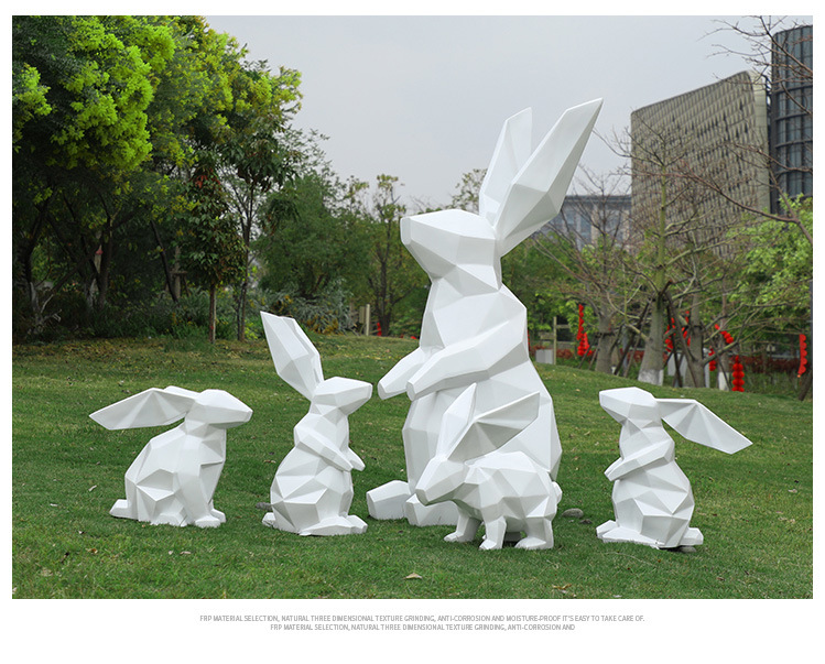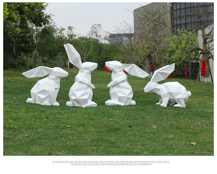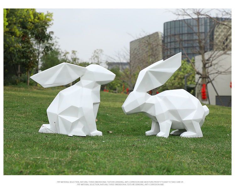 기하학적 토끼 조각 쇼핑몰 판매 사무실 공원 잔디 유리 섬유 강화 플라스틱 추상 동물 풍경 장식 장식품스토어 가기