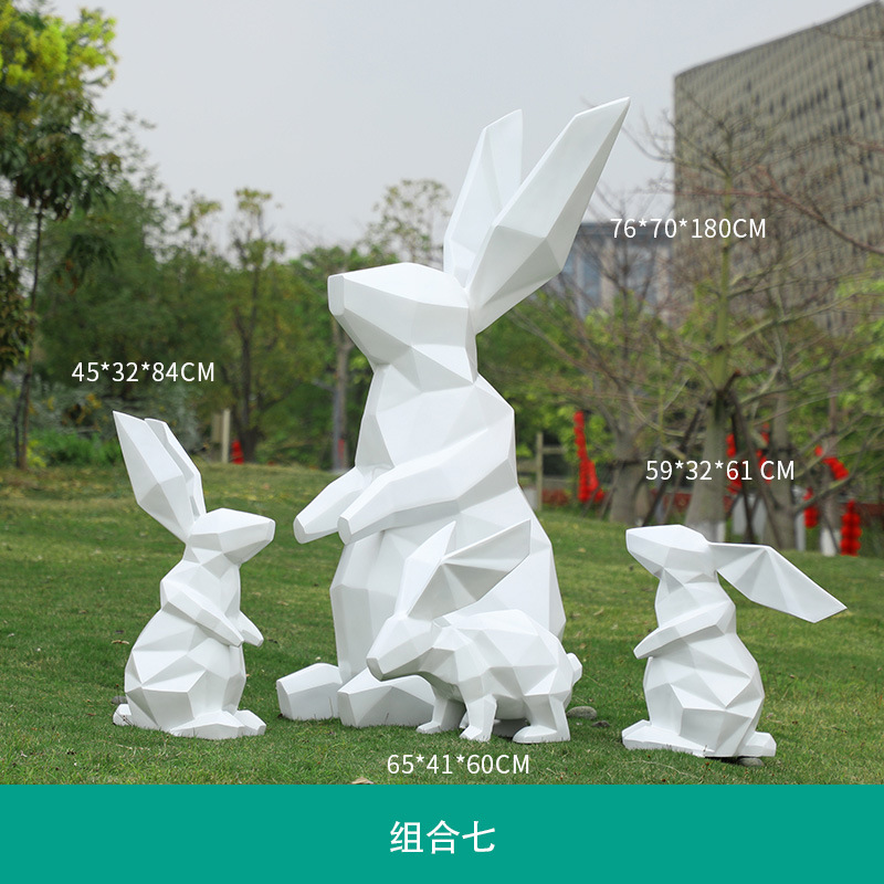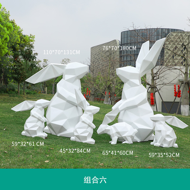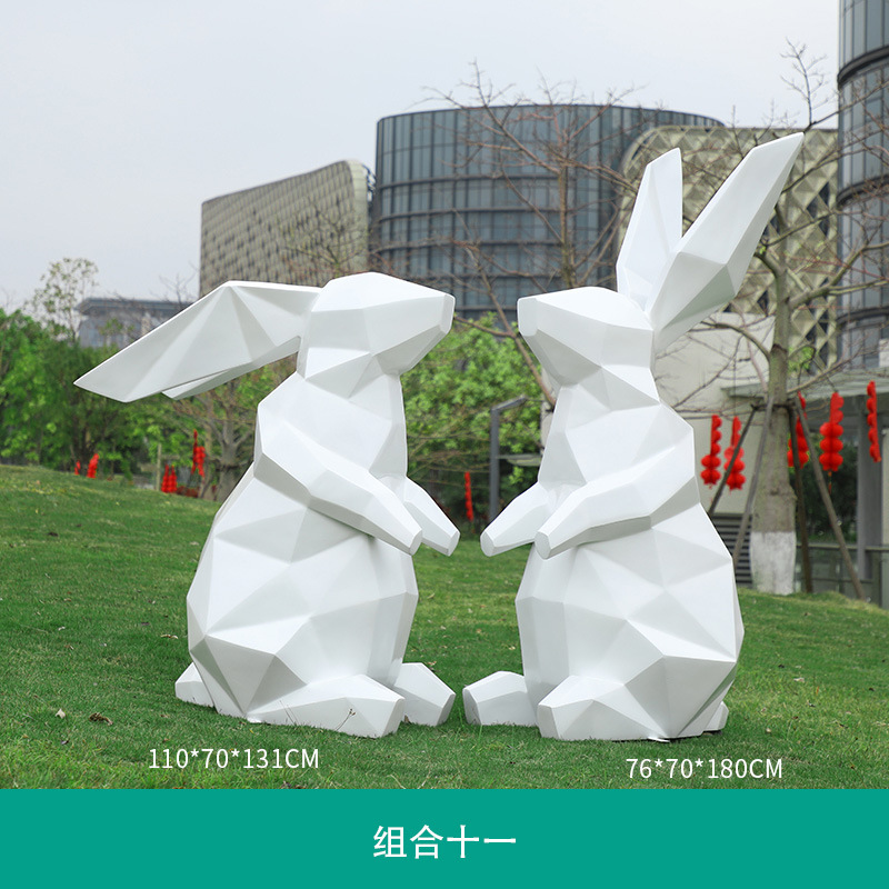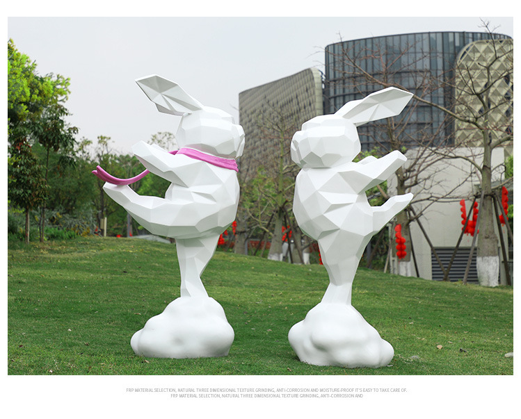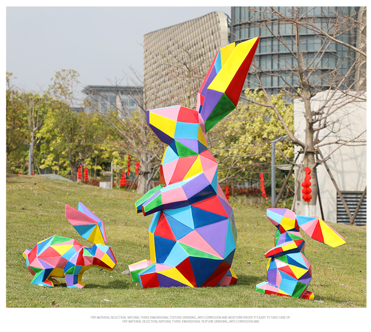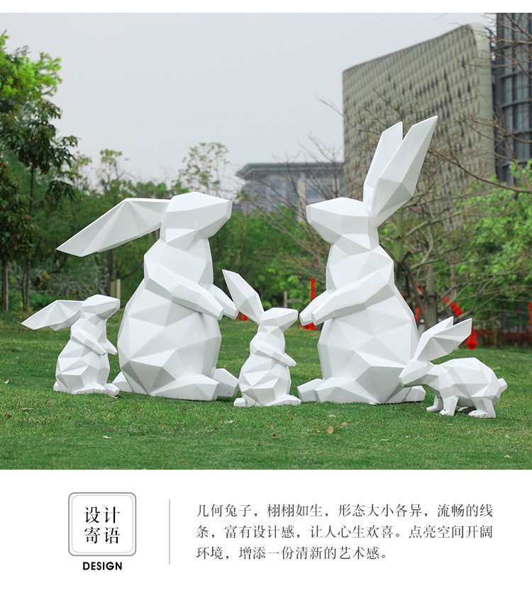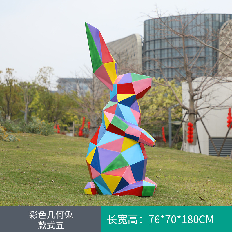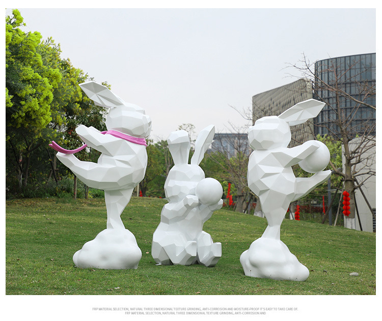 기하학적 토끼 조각 쇼핑몰 판매 사무실 공원 잔디 유리 섬유 강화 플라스틱 추상 동물 풍경 장식 장식품스토어 가기