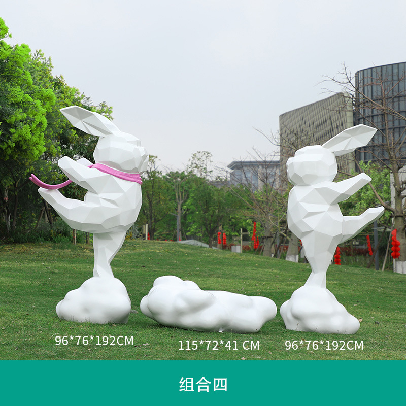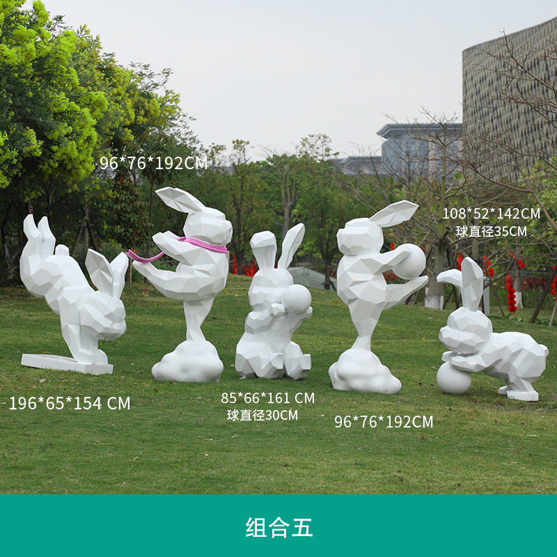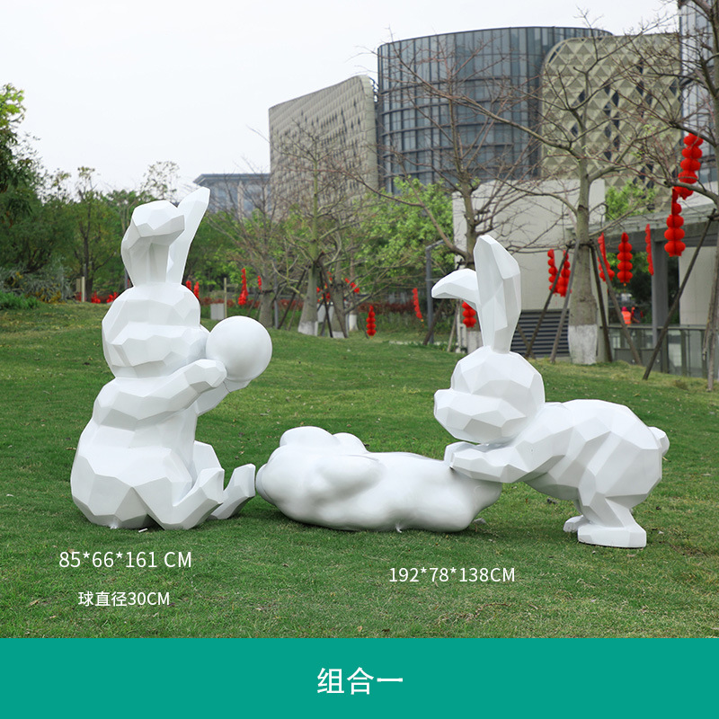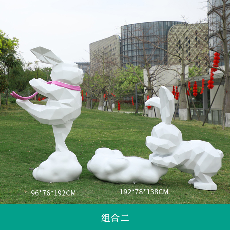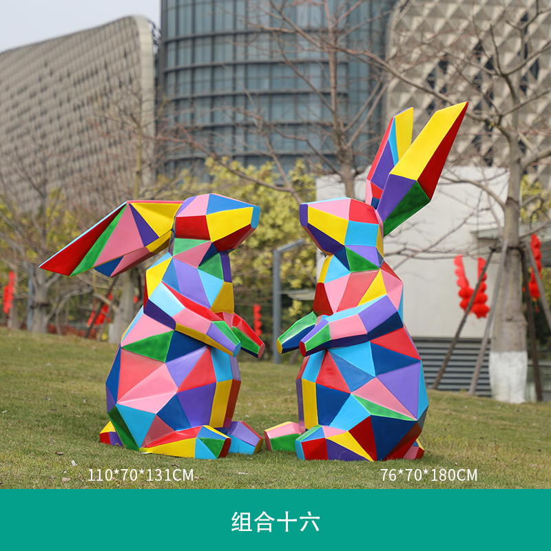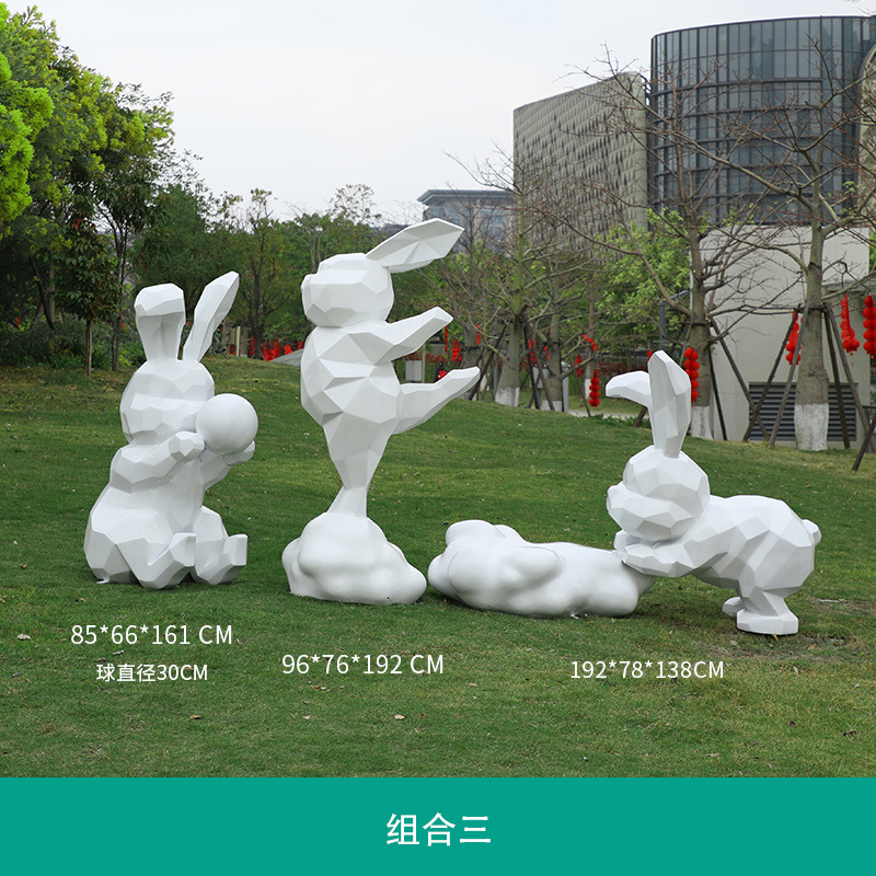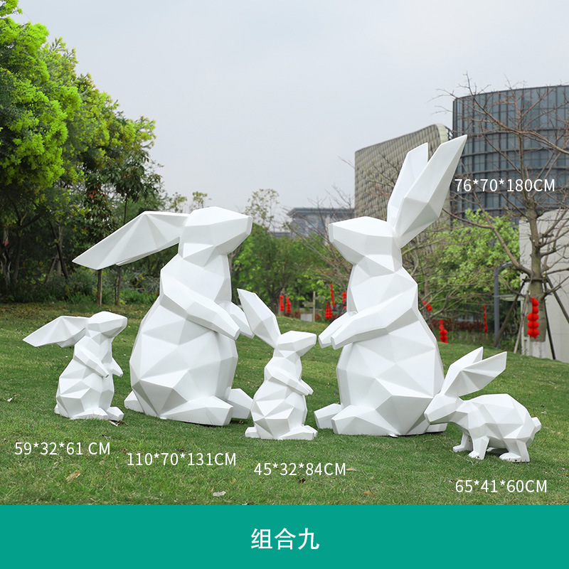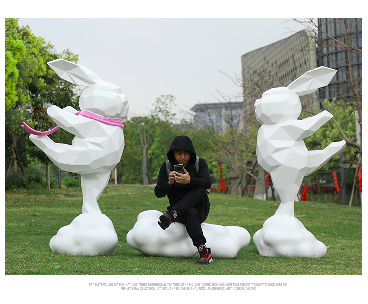기하학적 토끼 조각 쇼핑몰 판매 사무실 공원 잔디 유리 섬유 강화 플라스틱 추상 동물 풍경 장식 장식품스토어 가기