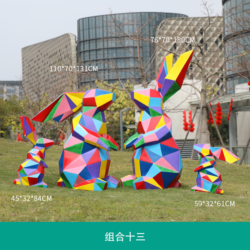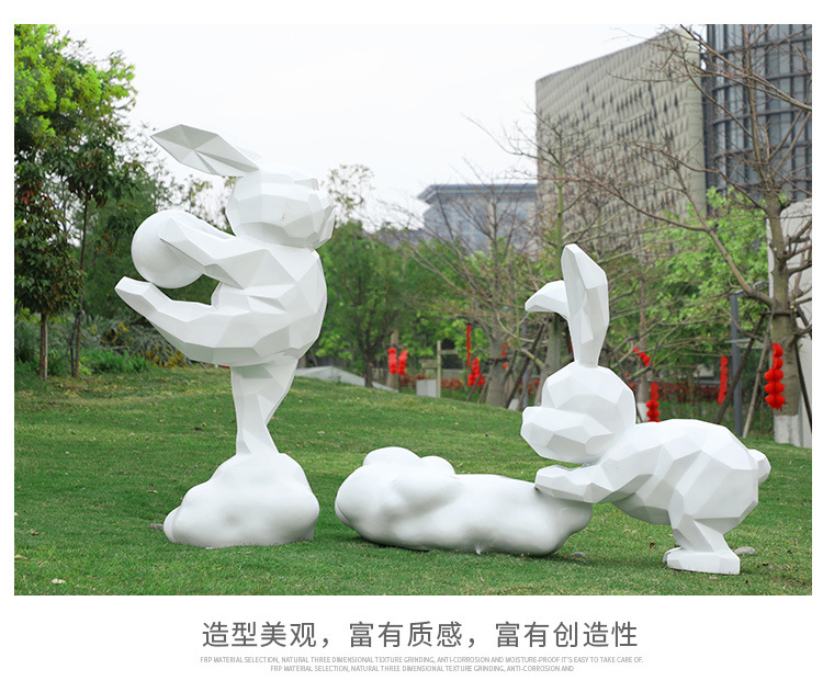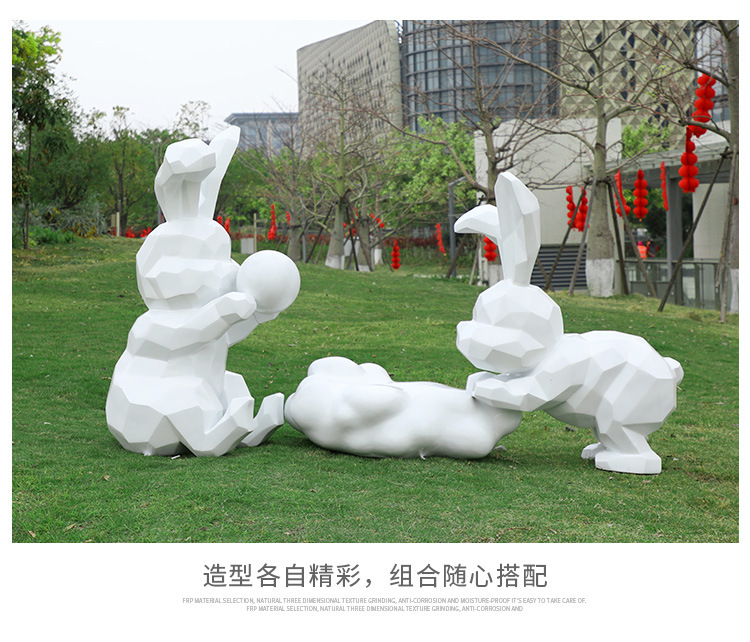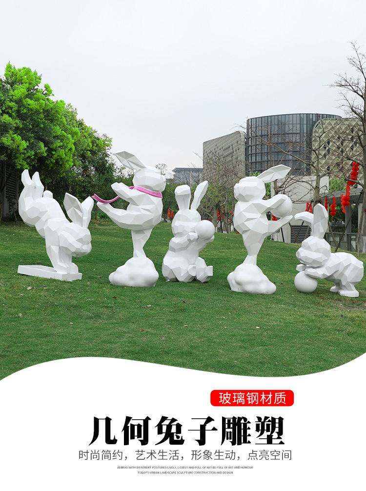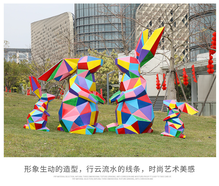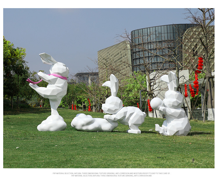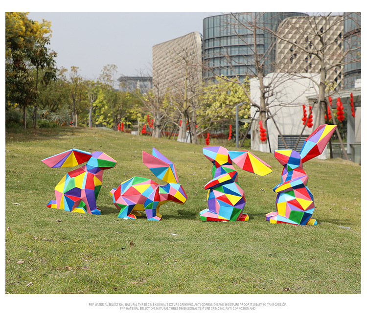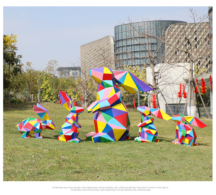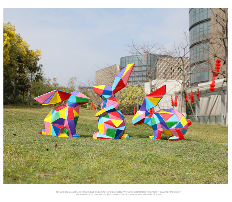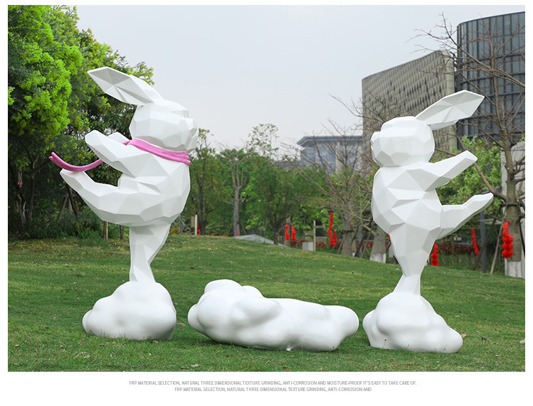기하학적 토끼 조각 쇼핑몰 판매 사무실 공원 잔디 유리 섬유 강화 플라스틱 추상 동물 풍경 장식 장식품