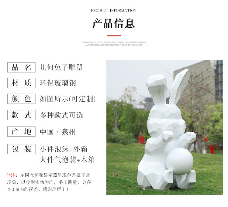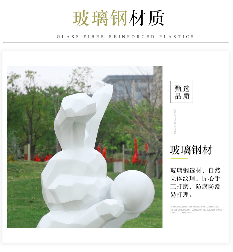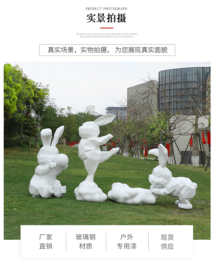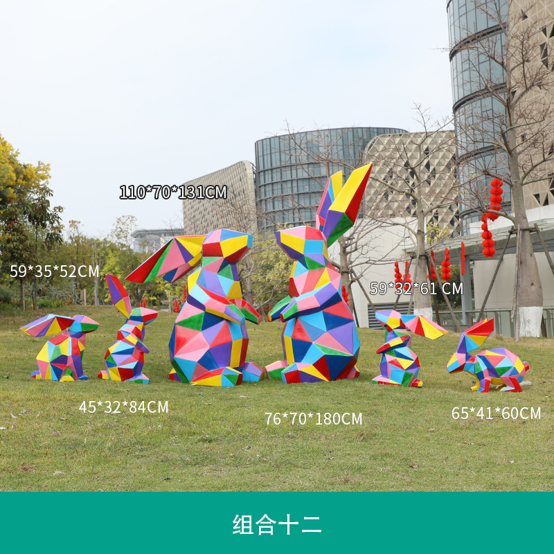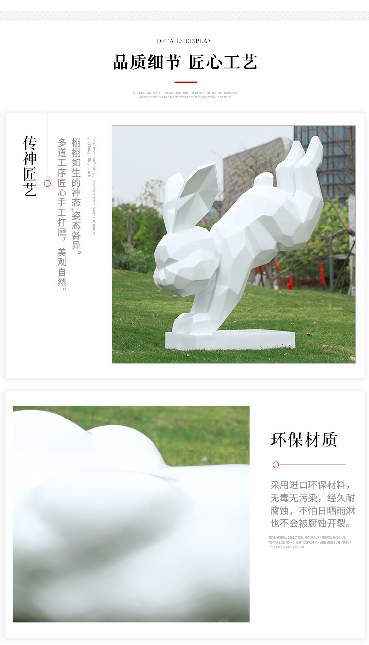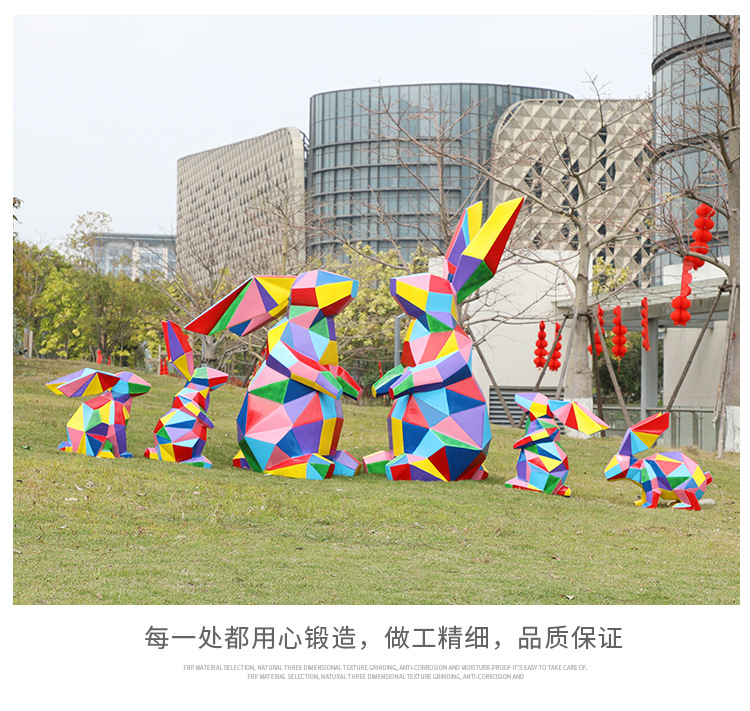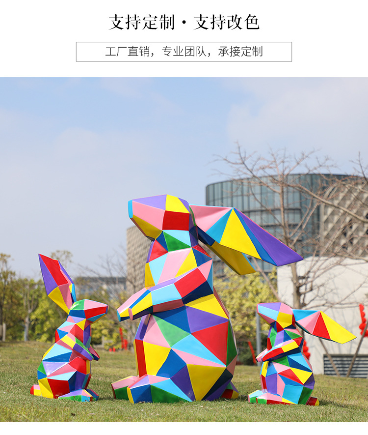 기하학적 토끼 조각 쇼핑몰 판매 사무실 공원 잔디 유리 섬유 강화 플라스틱 추상 동물 풍경 장식 장식품