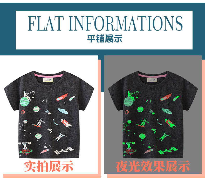 2024 봄 여름 새로운 어린이 티셔츠 빛나는 우주 세계 새로운 반팔 탑 어린이 티셔츠 판매 및 배송스토어 가기