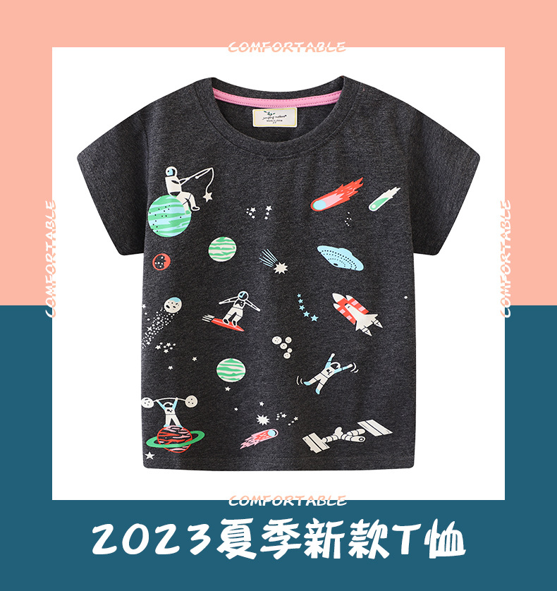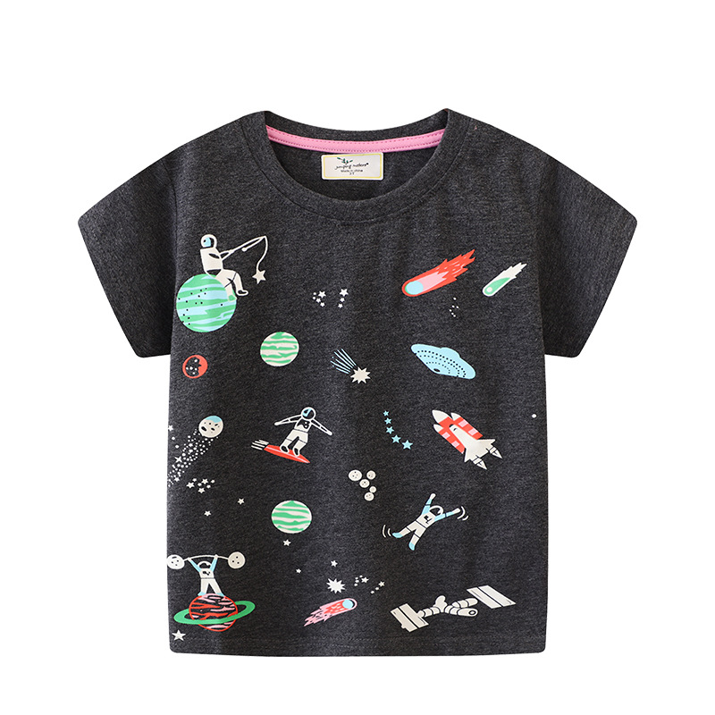2024 봄 여름 새로운 어린이 티셔츠 빛나는 우주 세계 새로운 반팔 탑 어린이 티셔츠 판매 및 배송
