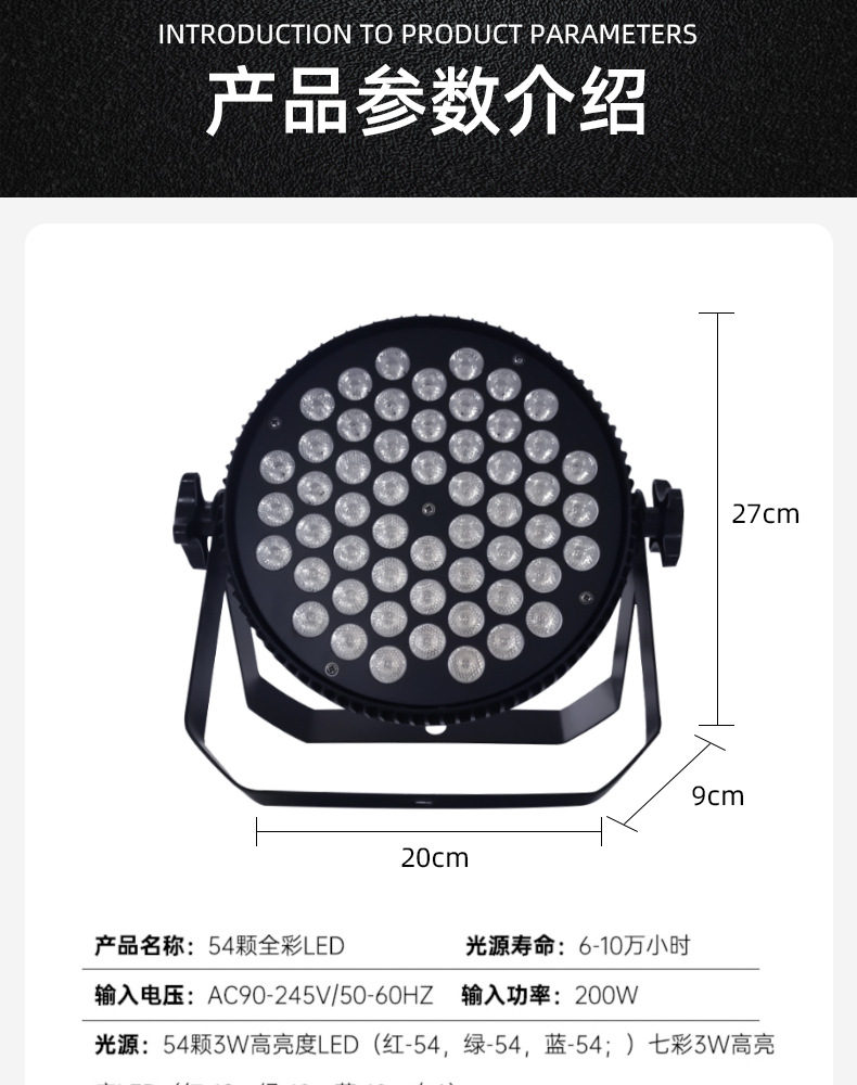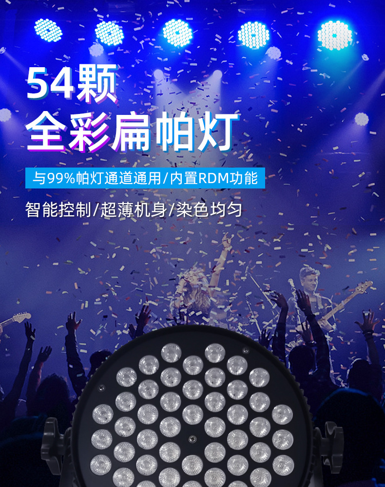 국경 간 뜨거운 판매 플랫 파 조명 54 3w 고출력 풀 컬러 핸드 핸들 원격 제어 LED 파 조명 얇은 무대 조명스토어 가기